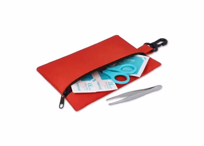Ta apteczka pierwszej pomocy jest zapakowana w poręczną torebkę z poliestru 300D z karabińczykiem i spełnia normy europejskie. Idealnie nadaje się do podróży, aktywności na świeżym powietrzu, uprawiania sportu lub do przechowywania w samochodzie lub plecaku na wypadek drobnych nagłych wypadków. Kompaktowa i praktyczna, zawiera niezbędne artykuły do opatrywania skaleczeń, otarć i drobnych urazów. Zawartość: 2 × opatrunki nieprzywierające 5 × 7,5 cm, 1 × nożyczki, 1 × opakowanie 5 gąbek nietkanych 2„ × 2” 4-warstwowych, 1 × taśma medyczna 1,25 cm × 4,5 m, 2 × gaziki nasączone alkoholem, 5 × plastry samoprzylepne 72 × 19 mm, 1 × bandaż elastyczny 5 × 450 cm, 1 × pęseta.