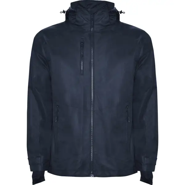 Kurtka wiatrówka wykonana z odpornego poliestru.Przedni zamek z osłoną na podbródku.Odpinany kaptur. Wewnętrzne mankiety ochronne przed wiatrem.Regulowanay kaptur i talia.Trzy przednie kieszenie zapinane na zamek. Jedna na prawej piersi i dwie na bokach.Dwie wewnętrzne kieszenie na rzep.Mankiety ściągane zapinaniami.