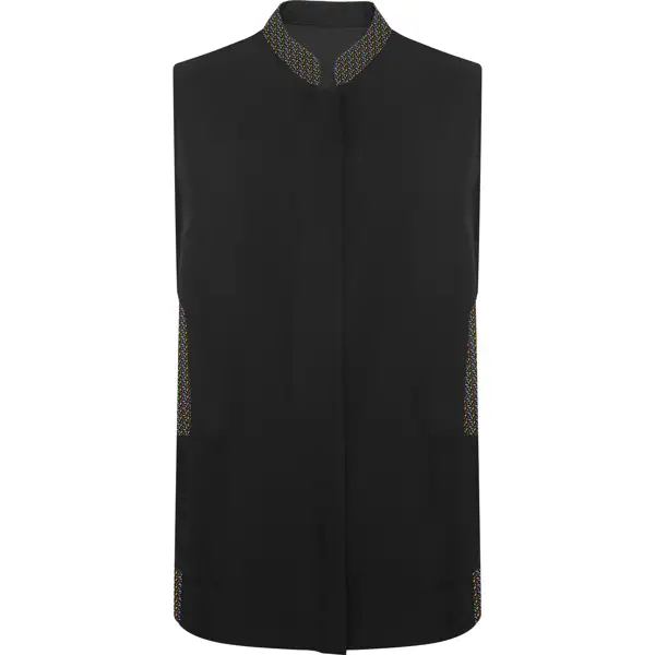 Fartuchy robocze bez rękawów.· Wersje gładkie i kontrastowe z sublimowanymi szwami.· Ukryte metalowe, antykorozyjne napy na przedniej listwie.· Stójka.· Dwie skośne kieszenie naszywane na biodrach.· Zewnętrzna etykieta Roly WRK.