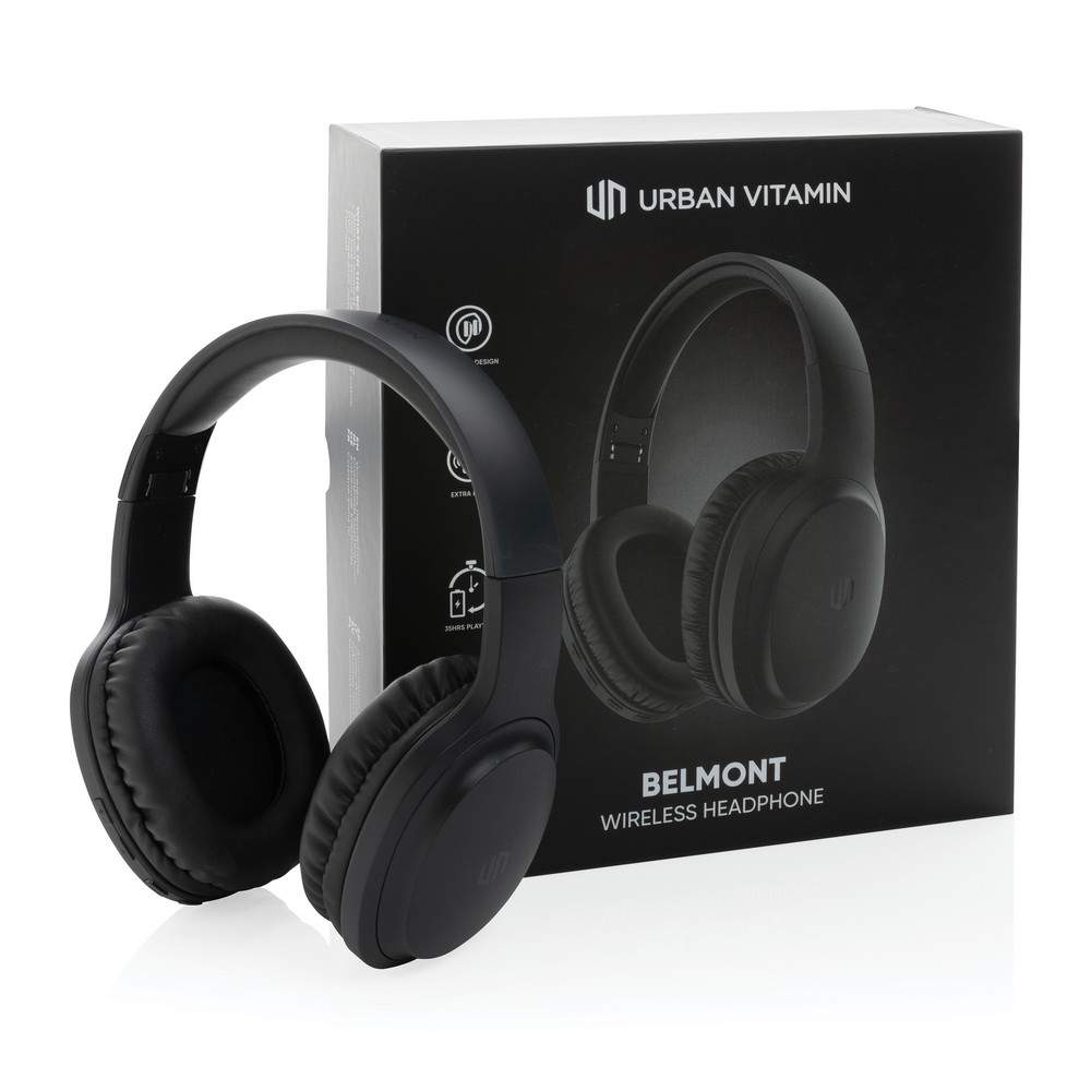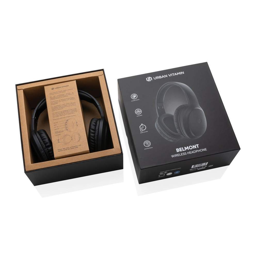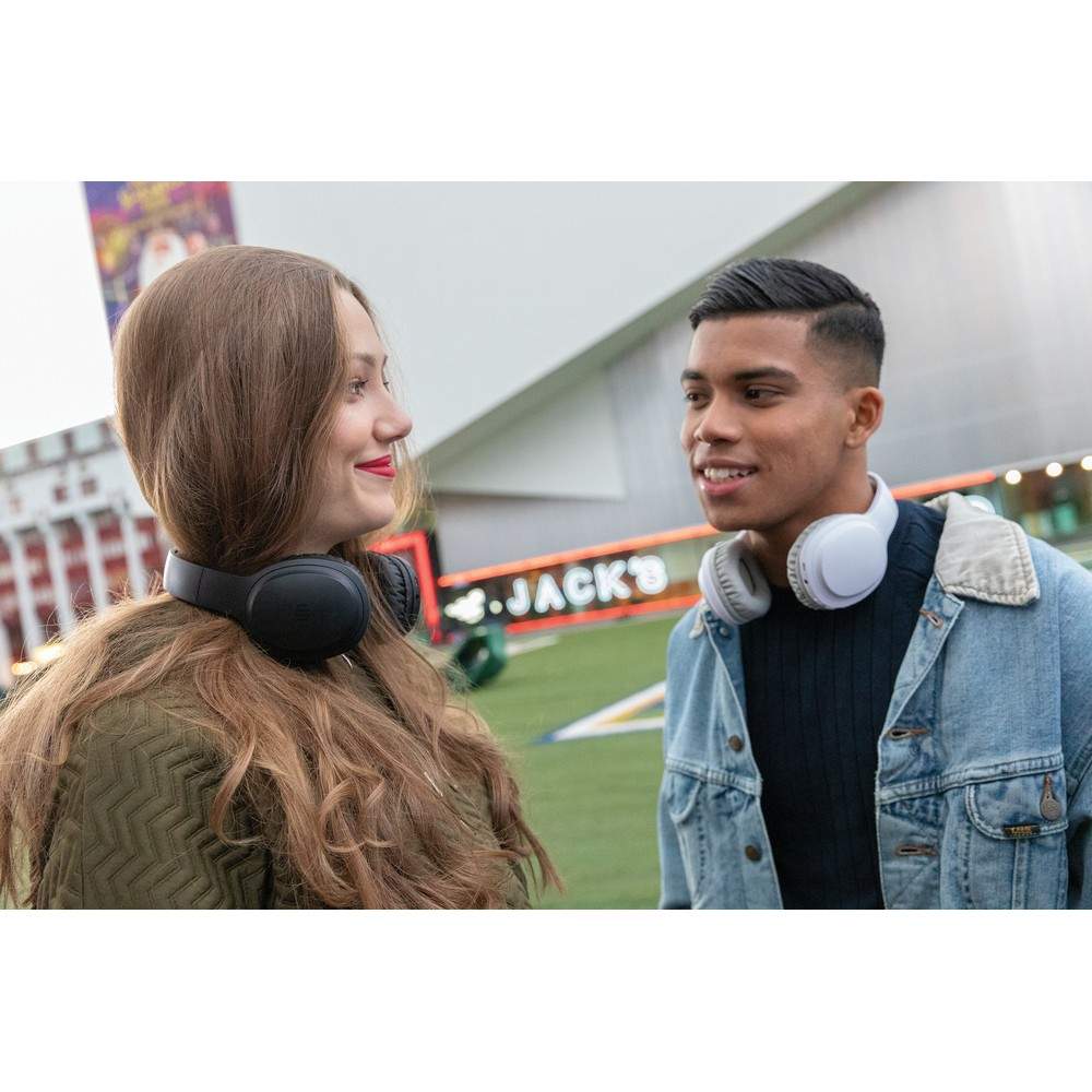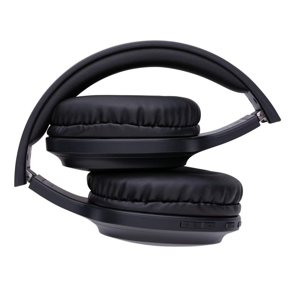 Nauszne słuchawki bezprzewodowe, składane, przycisk wzmacniający basy z boku słuchawek, wbudowany mikrofon, funkcja odbierania połączeń, komfortowe nauszniki, czas odtwarzania na jednym ładowaniu do 35 godzin, nie zawiera PVC, opakowanie nie zawiera plastiku, ślad węglowy produktu: 2,72 kg CO2