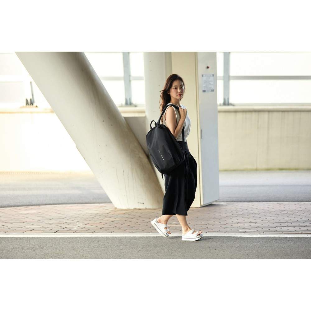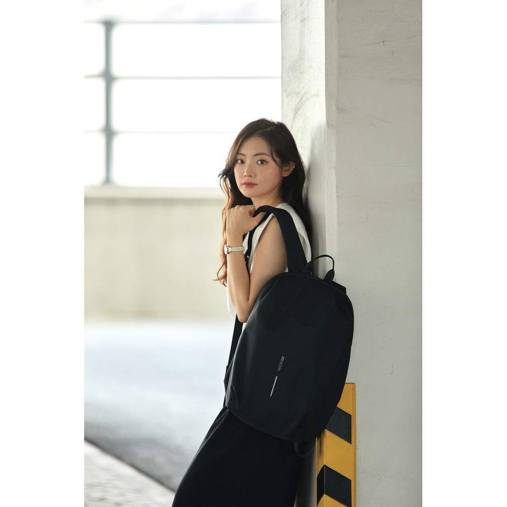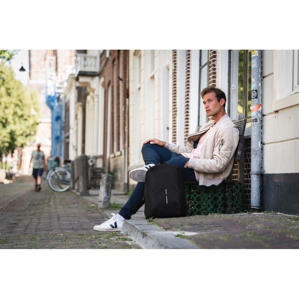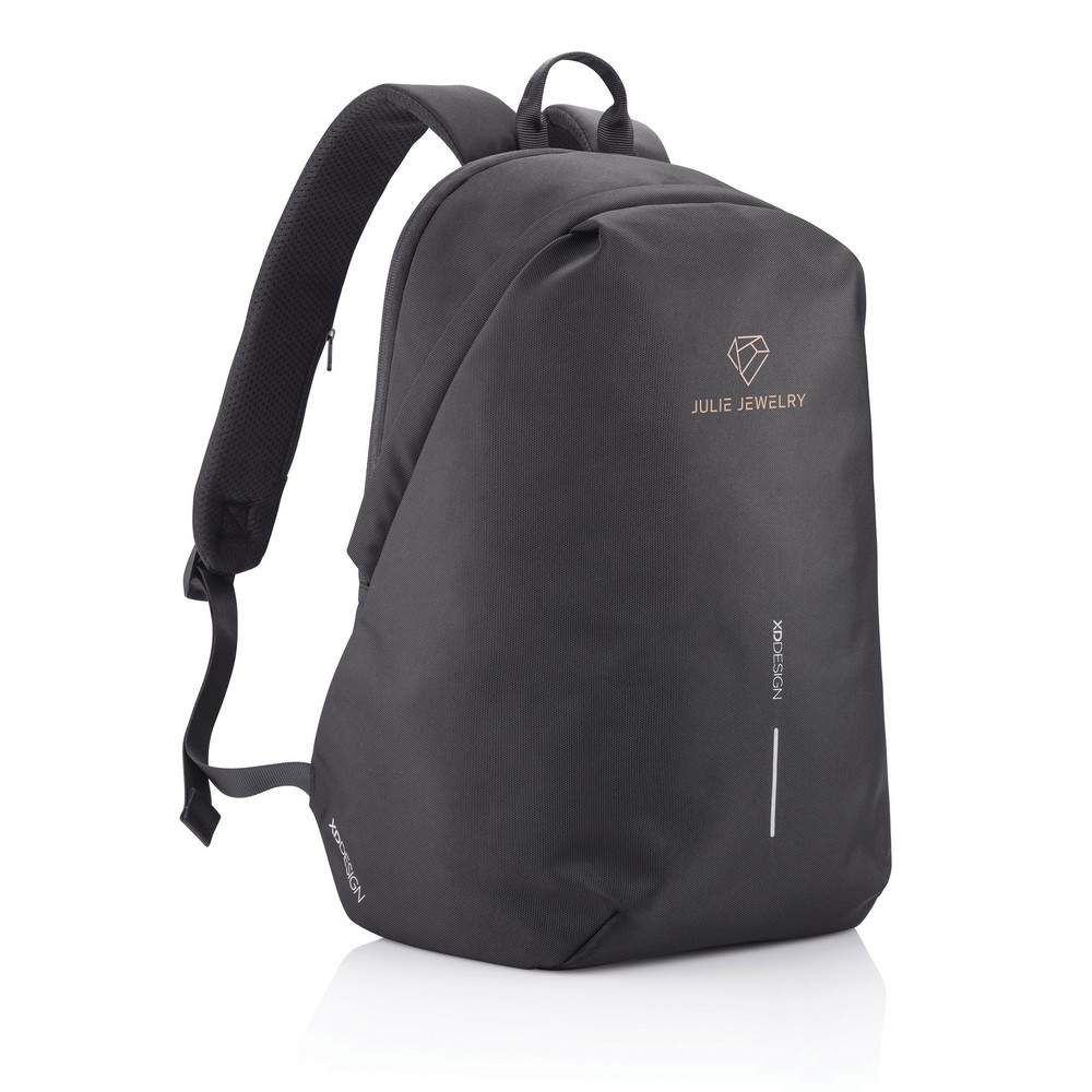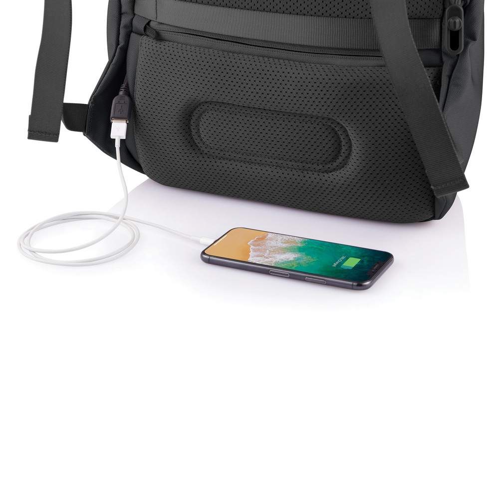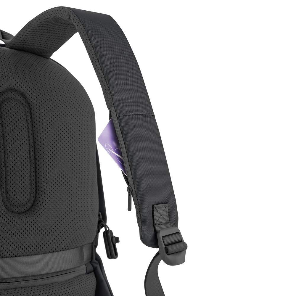 Plecak chroniący przed kieszonkowcami Bobby Soft, wodoodporny materiał, wykonany z przyjaznego środowisku materiału rPET, ukryte zamki i kieszenie, kieszenie z ochroną RFID, przestronna przegroda główna z kieszeniami wewnątrz i miękką przegrodą na laptopa do 15,6", zintegrowany port USB do ładowania telefonów (power-bank nie jest dołączony), rozszerzalna górna część plecaka, ślad węglowy produktu: 5,1 kg CO2