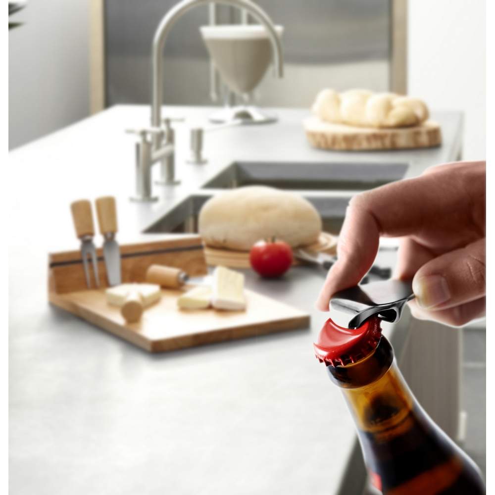 Otwieracz do butelek z brelokiem umożliwiającym przyczepienie do kluczy, czarne pudełko podarunkowe w komplecie, produkt wykonany z metalu