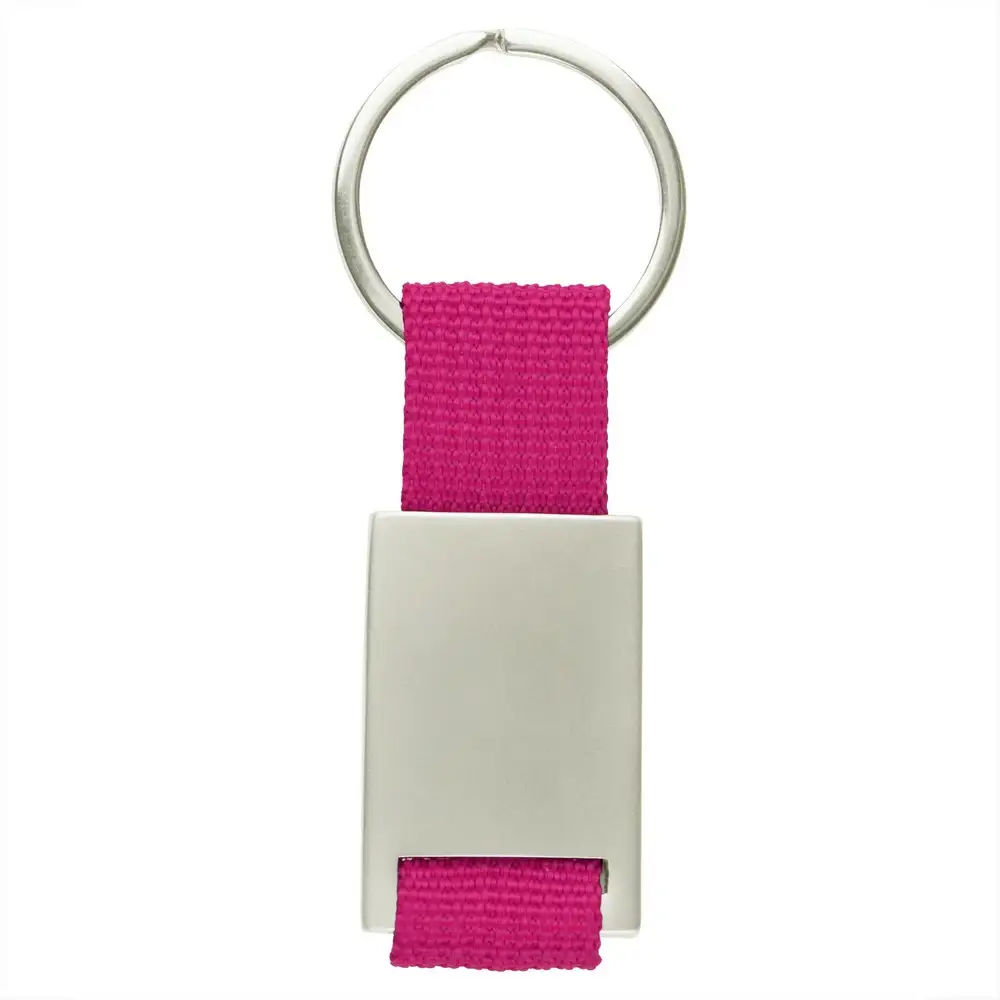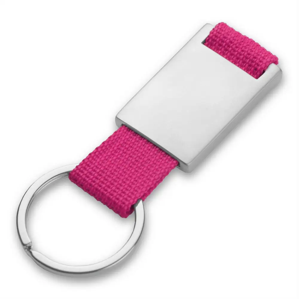 Brelok do kluczy z metalową plakietką przeznaczoną pod znakowanie, produkt wykonany z metalu i poliestru