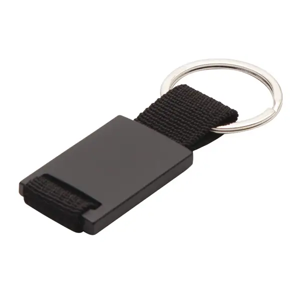 Elegancki brelok o czarnej matowej powierzchni. Wykonany z metalu i poliestru. Pakowany w czarne pudełko upominkowe.