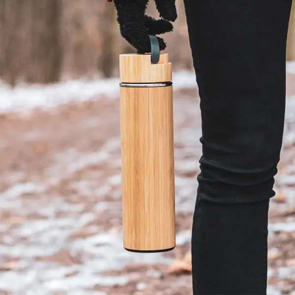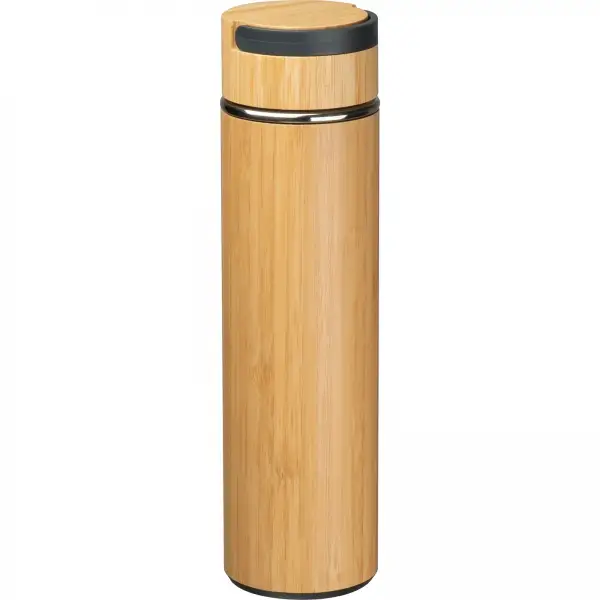 Butelka termiczna z podwójnymi ściankami, wykonana ze stali nierdzewnej, wyposażona w sitko do parzenia herbaty. Pojemność 500 ml.