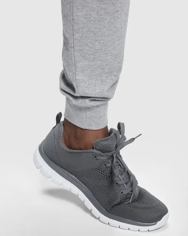 Długie spodnie dopasowane przy kostce. Elastyczna taśma w pasie i regulowany ściągacz z metalowymi oczkami. Boczne kieszenie z zapięciem na zamek błyskawiczny w rozmiarach dla dorosłych. Wyjątkowo duża kieszeń umieszczona w prawym bocznym szwie z odwróconym zamkiem błyskawicznym. Przecięte na ukos panele na wysokości ud. Prążkowane mankiety 1x1. Tylny panel w górnej części spodni.
