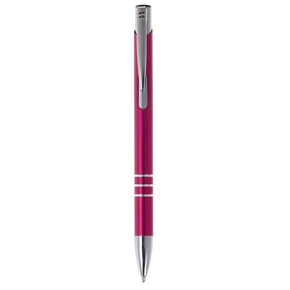Długopis z kolorowym trzonem o błyszczącym wykończeniu, posiada elementy w srebrnym kolorze, wkład w niebieskim kolorze, produkt wykonany z aluminium