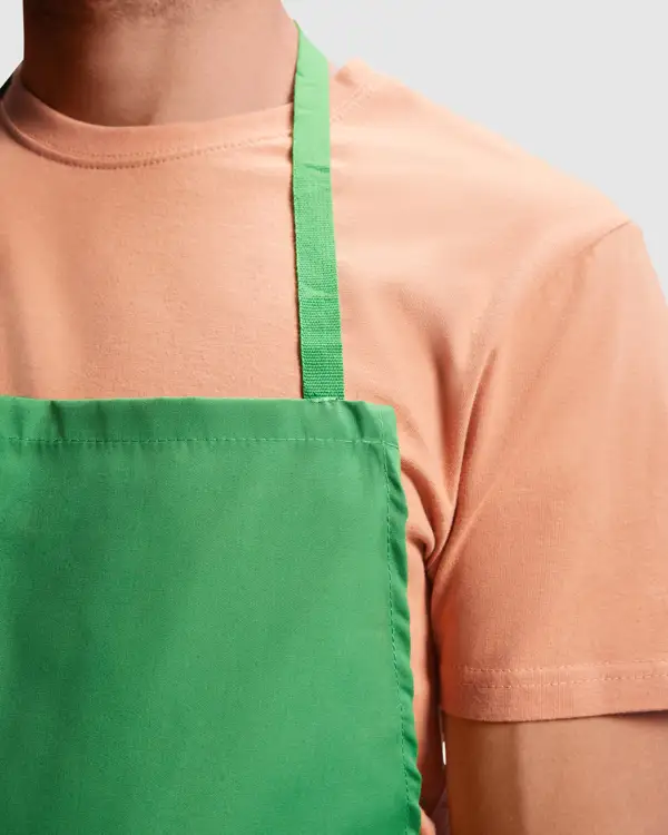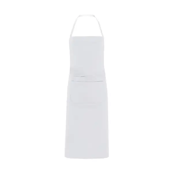 Długi fartuch popelinowy.· Stały poliestrowy pasek na szyję.· Wiązania poliestrowe umożliwiające regulację w pasie.· Przednia kieszeń.· Wydłużona wewnętrzna kieszeń.