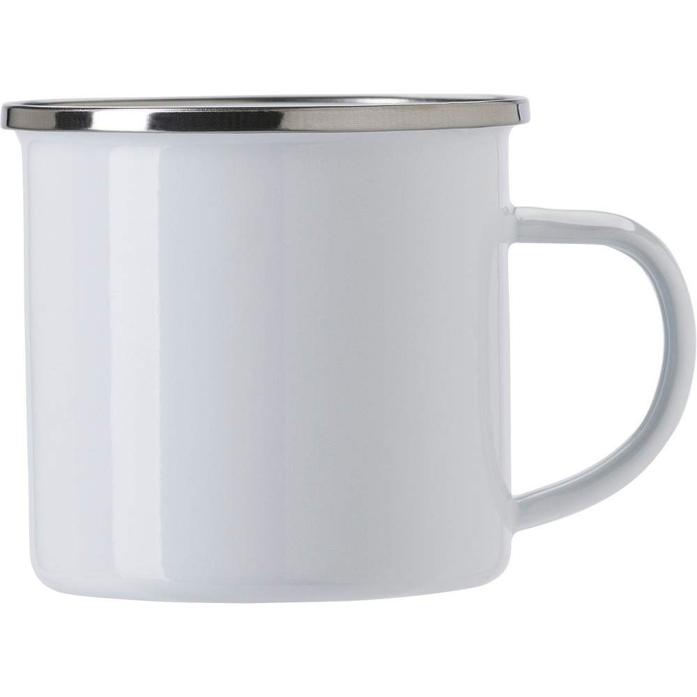 Emaliowany kubek 350 ml, krawędź ze stali nierdzewnej