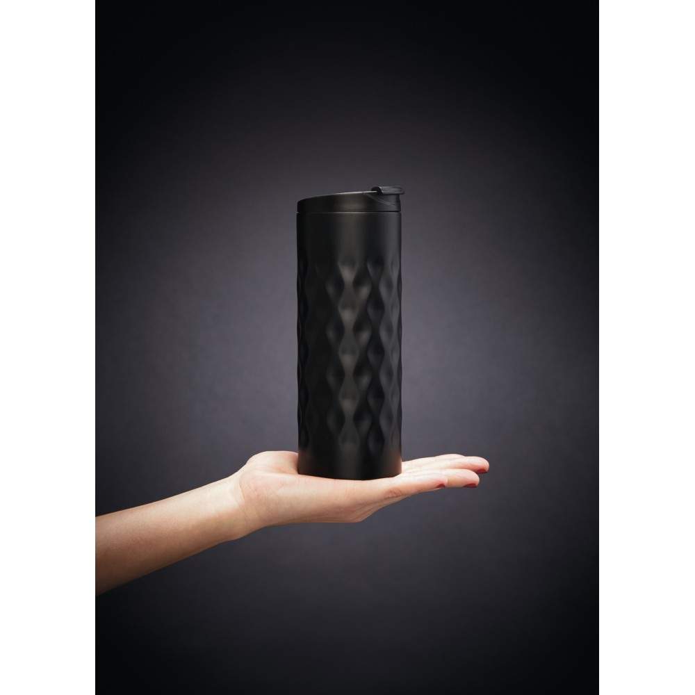 Geometryczny kubek termiczny 350 ml, wykonany ze stali nierdzewnej, podwójne ścianki, klasa termiczna: B, ślad węglowy produktu: 2,4 kg CO2