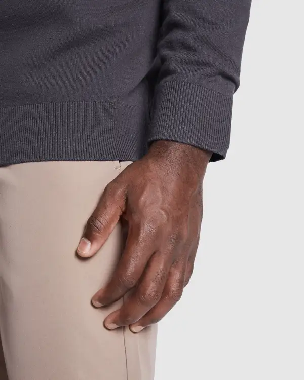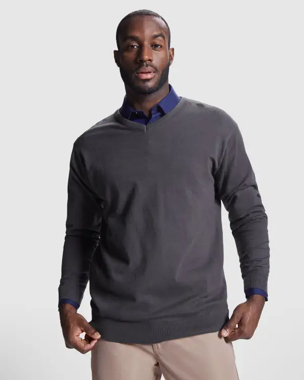 Sweter z dekoltem w serek.· Cienka dzianina.· Prążkowane mankiety i obszycie 1x1.