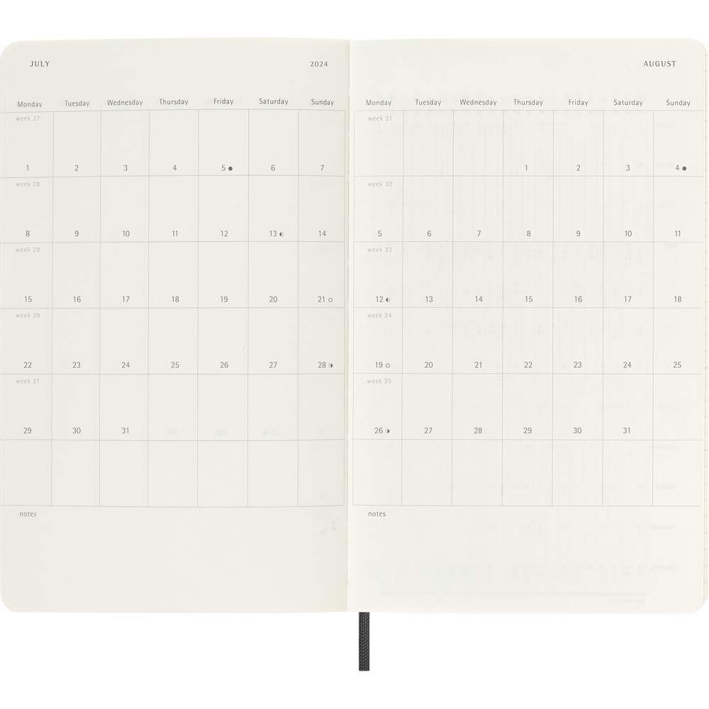 Kalendarz duży (ok. A5, large) MOLESKINE z notatnikiem, miękka okładka, tygodniowy (144 str.), zakładka i elastyczna opaska do zamykania