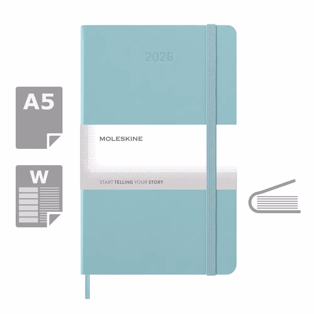 Kalendarz duży (ok. A5, large) MOLESKINE z notatnikiem, twarda okładka, tygodniowy (144 str.), zakładka i elastyczna opaska do zamykania