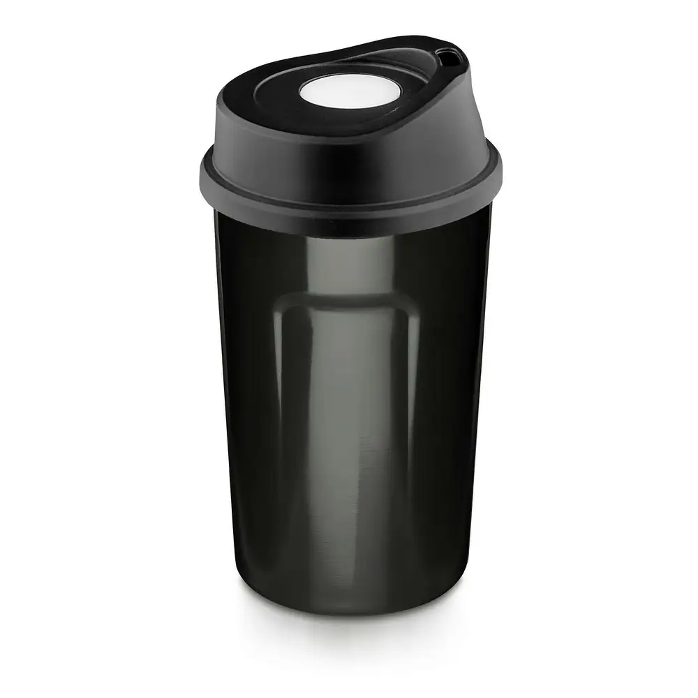 Kubek termiczny 400 ml Air Gifts, posiada podwójne ścianki ze stali nierdzewnej z miedzianą izolacją próżniową, co spowalnia oddawanie temperatury na zewnątrz, zachowując funkcje termosu, plastikowe wieczko z przyciskiem otwarcia/zamknięcia ustnika umożliwiającym obsługę jedną ręką, błyszczące wykończenie, utrzymuje temperaturę napojów gorących do 15 godzin +leakproof