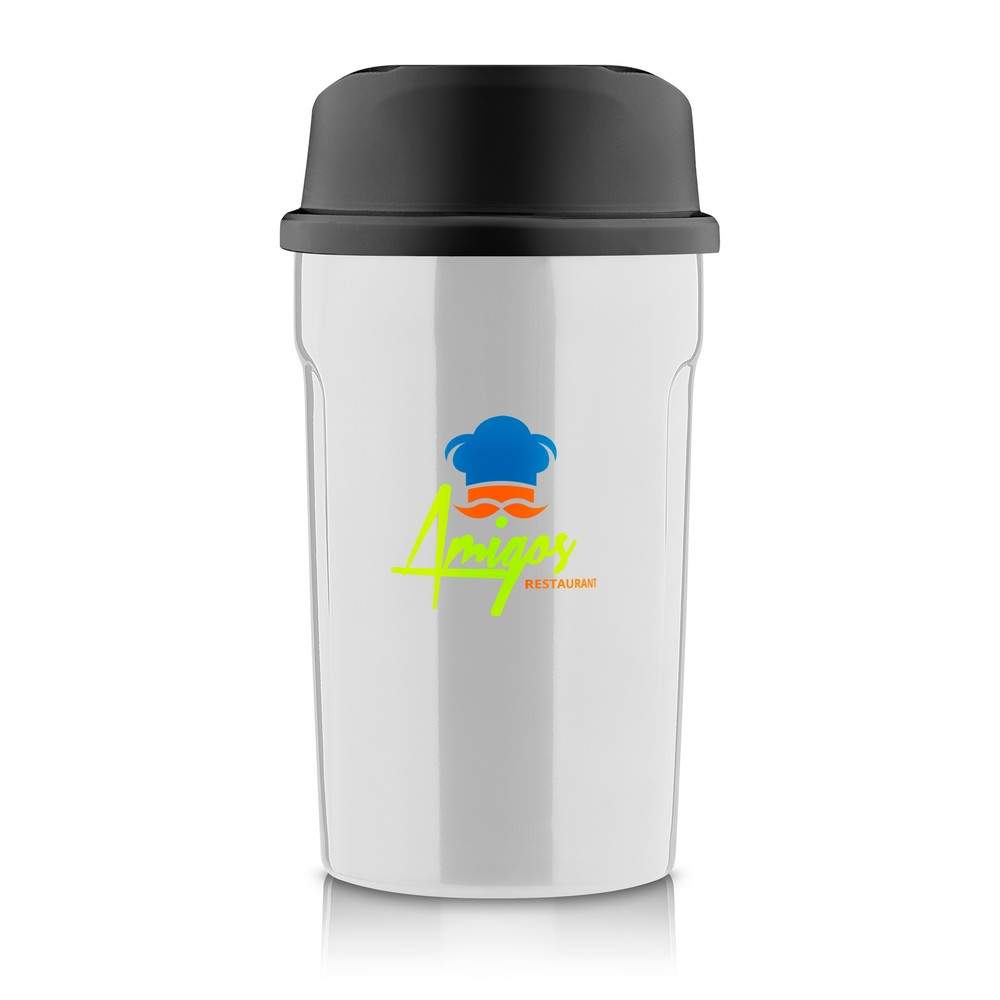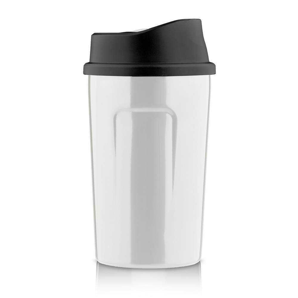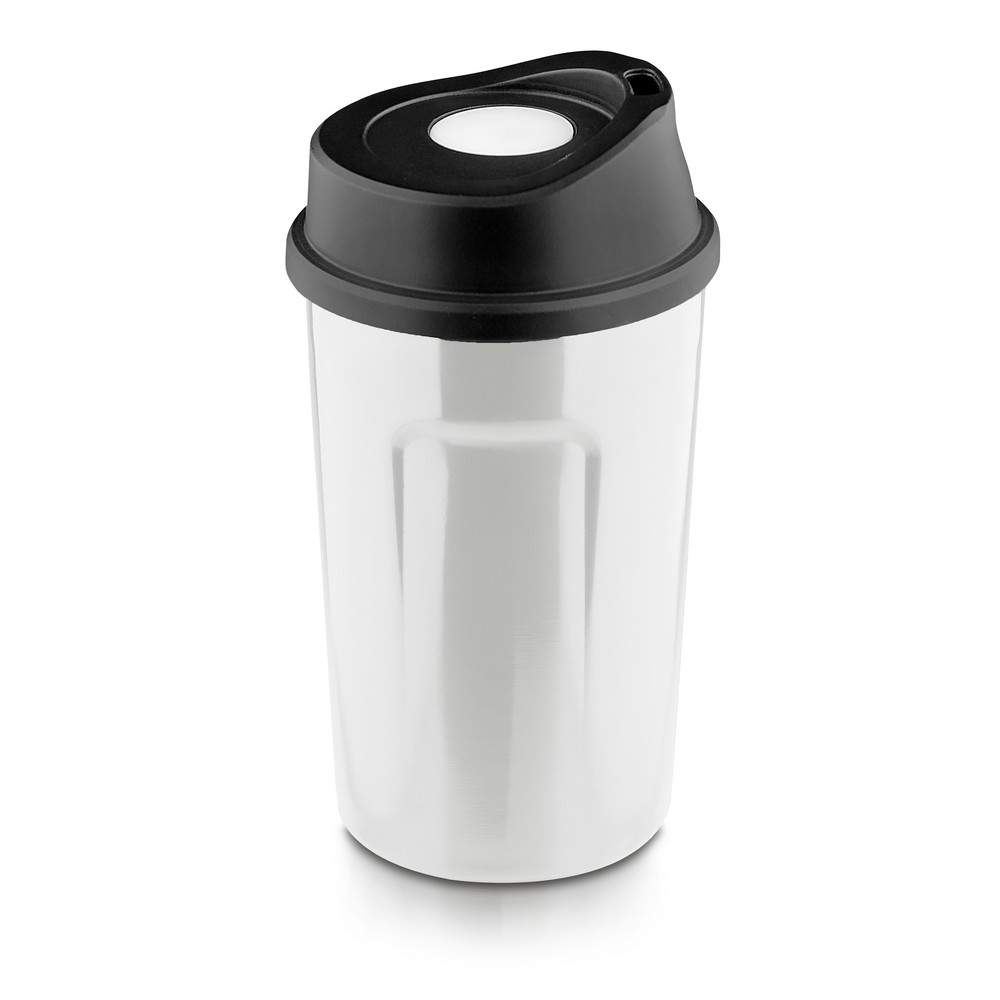 Kubek termiczny 400 ml Air Gifts, posiada podwójne ścianki ze stali nierdzewnej z miedzianą izolacją próżniową, co spowalnia oddawanie temperatury na zewnątrz, zachowując funkcje termosu, plastikowe wieczko z przyciskiem otwarcia/zamknięcia ustnika umożliwiającym obsługę jedną ręką, błyszczące wykończenie, utrzymuje temperaturę napojów gorących do 15 godzin +leakproof
