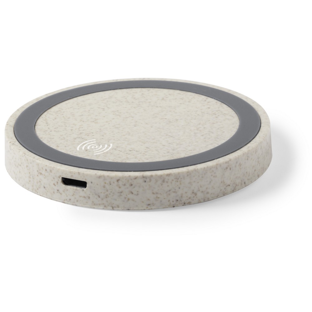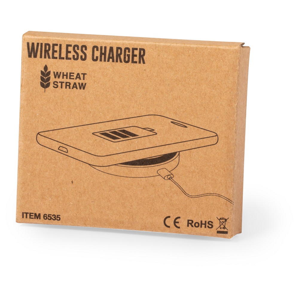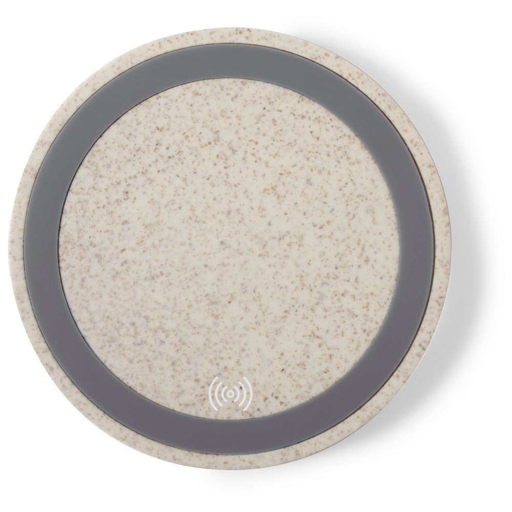 Ładowarka bezprzewodowa 5W z włókien słomy pszenicznej, działa z urządzeniami posiadającymi możliwość ładowania indukcyjnego, wejście micro USB 5V/2A, kabel micro USB w komplecie, antypoślizgowa podstawa
