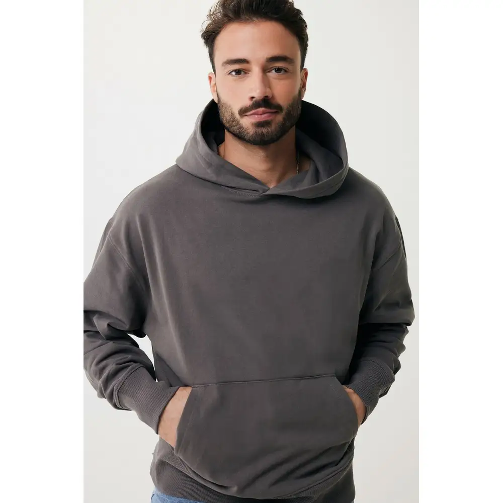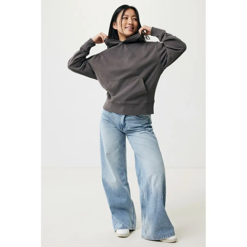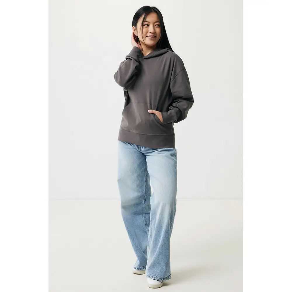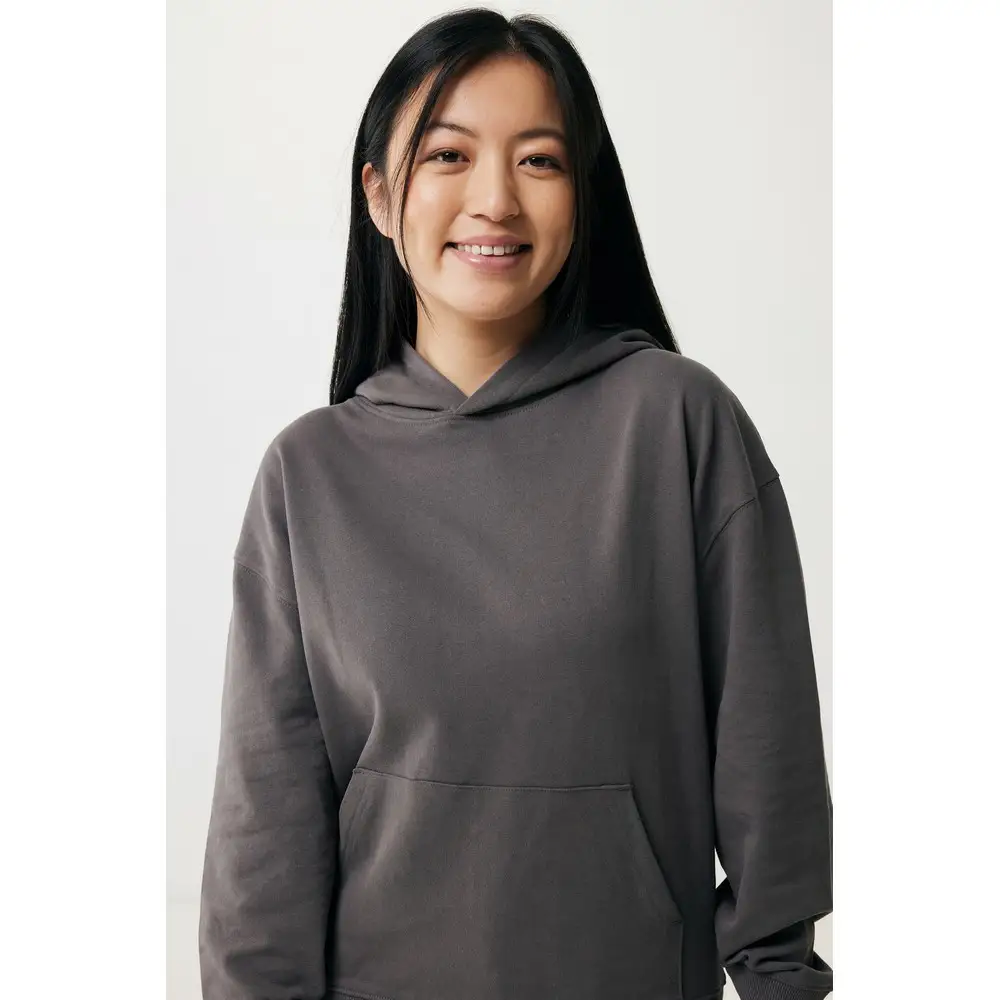 Bluza z kapturem, unisex, luźny krój, splot Brushed Sweat, długie rękawy, dwuwarstwowy kaptur, niebarwiona bawełna wykonana w 50% z bawełny z recyklingu i w 50% z bawełny organicznej o gramaturze 340 g/m2, bez dodatku poliestru, posiada wbudowany znacznik AWARE™, który potwierdza wykorzystanie materiałów z recyklingu, posiada kod QR na metce, który prowadzi do cyfrowego paszportu produktu, 2% wpływów z każdego sprzedanego produktu z kolekcji Impact jest przekazywane na rzecz Water.org