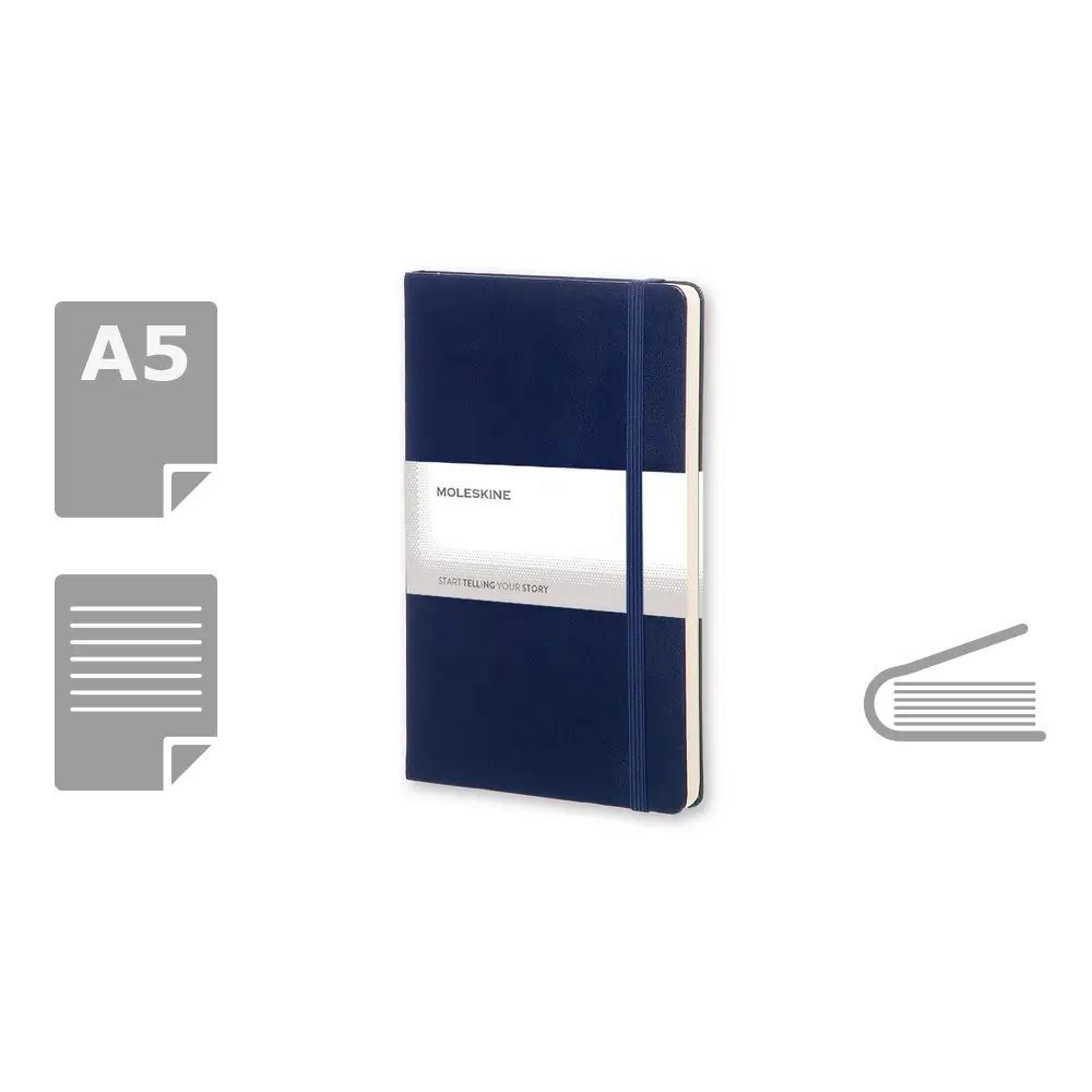 Notatnik duży (ok. A5, large) MOLESKINE, 240 stron w linie, twarda okładka, kieszeń wewnętrzna, zakładka i elastyczna opaska do zamykania