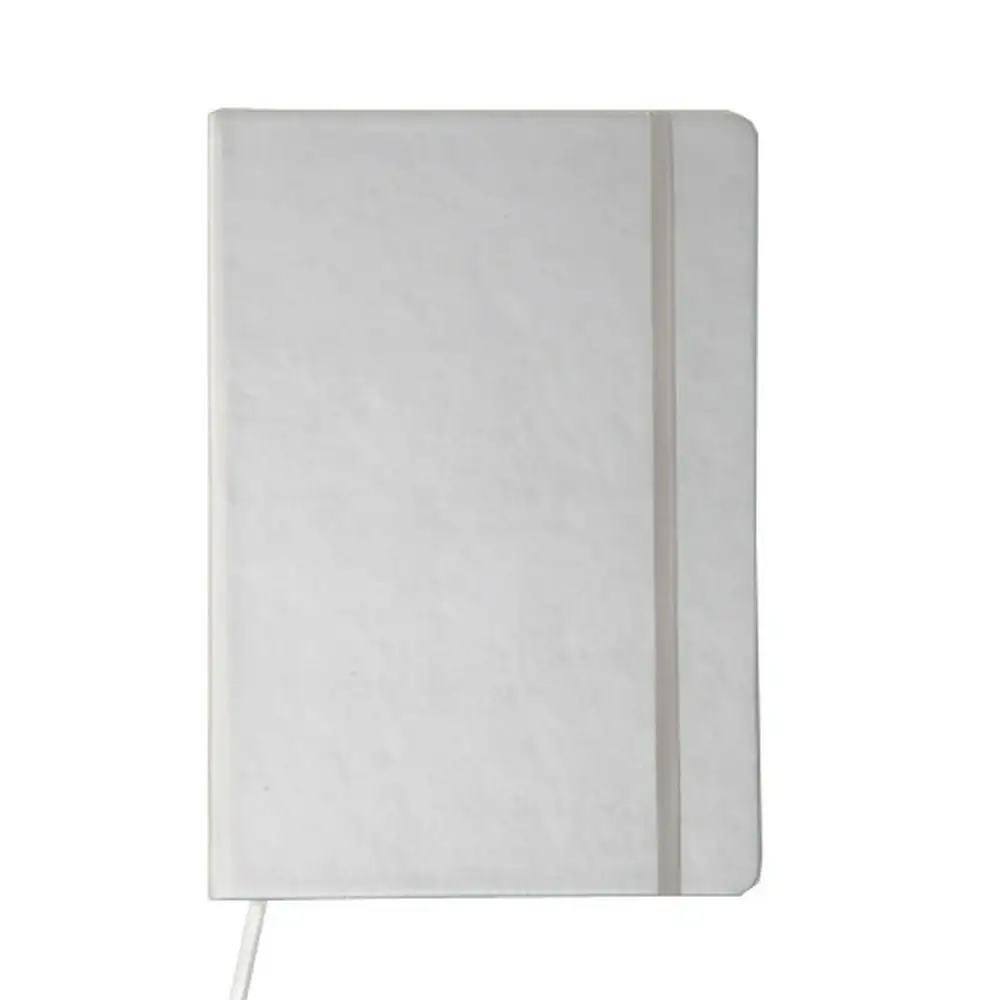 Notatnik w formacie A5, posiada 100 pustych kartek, twarda okładka, tasiemka zakładkowa umożliwia wygodne zaznaczanie ostatniej strony lub ważniejszych notatek, dodatkowe zamknięcie w postaci dopasowanej kolorystycznie elastycznej opaski, produkt wykonany z PU