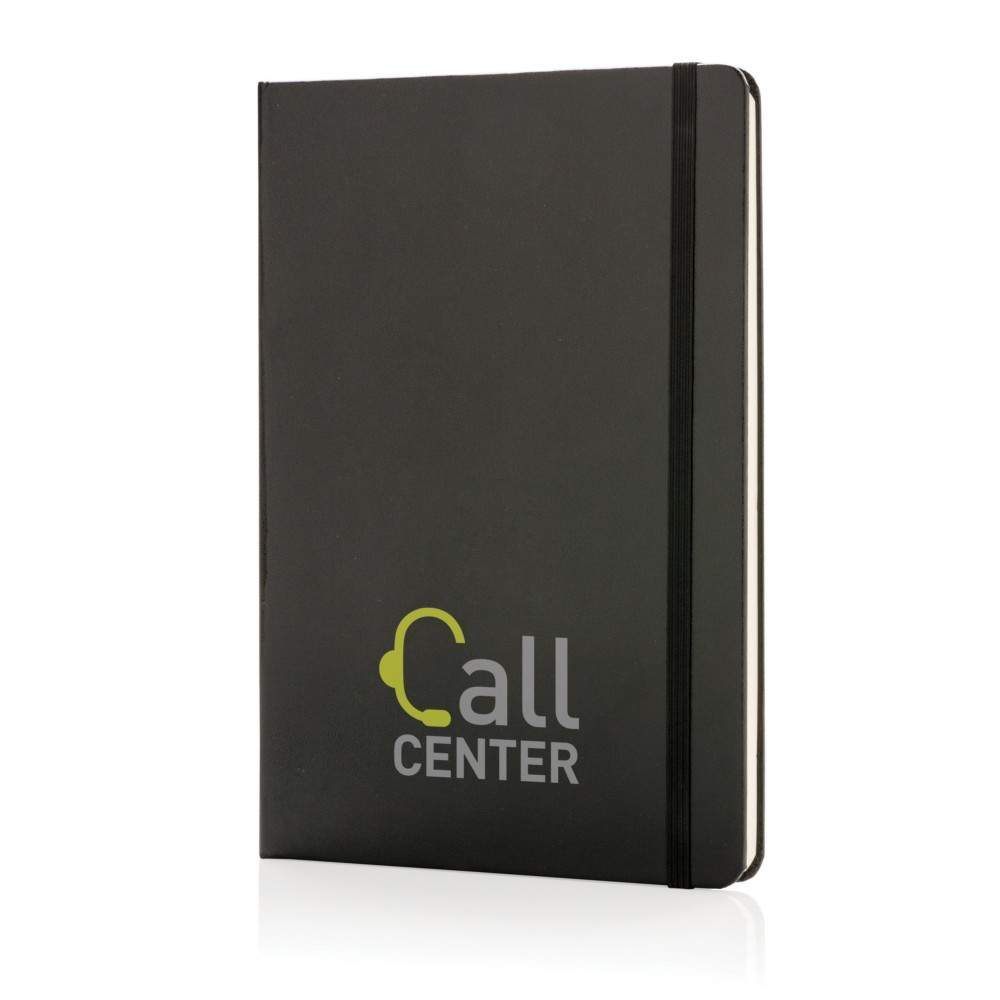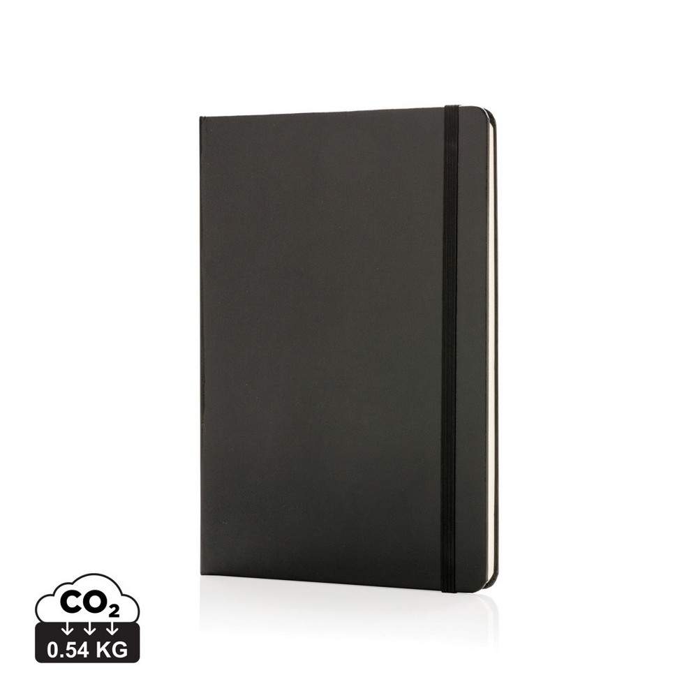 Notatnik A5 (72 puste kartki 70 g/m2 w kolorze kremowym), szkicownik, twarda okładka, tasiemka zakładkowa oraz elastyczna opaska do zamykania, ślad węglowy produktu: 0,54 kg CO2