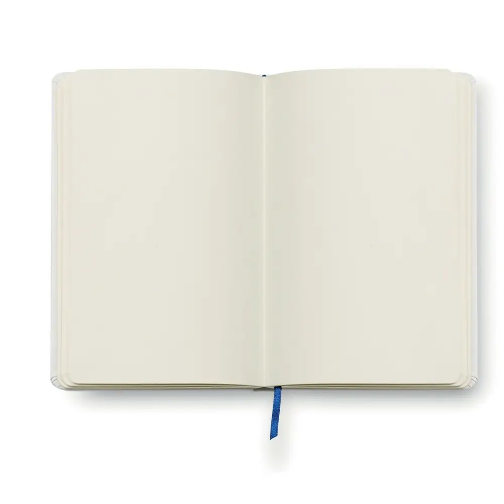 Notatnik (ok. A6, 80 pustych kartek), tasiemka zakładkowa, specjalna okładka pod znakowanie full colour, elastyczna opaska do zamykania