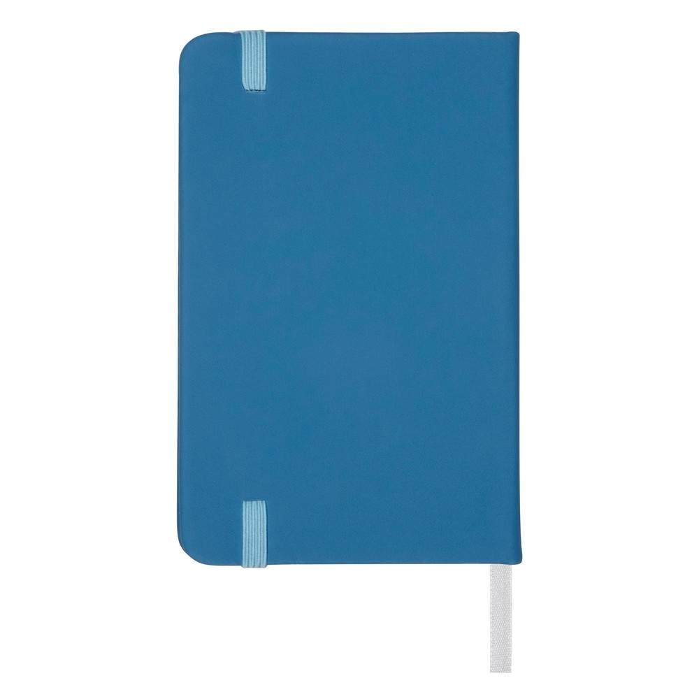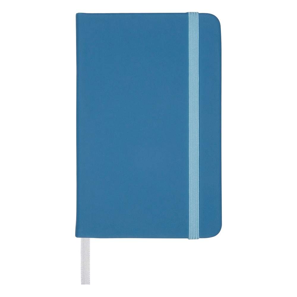 Notatnik w kieszonkowym formacie ok. A6, posiada 96 kartek w linie (192 strony), tasiemka zakładkowa umożliwia wygodne zaznaczanie ostatniej strony lub ważniejszych notatek, dodatkowe zamknięcie w postaci dopasowanej kolorystycznie elastycznej opaski, twarda okładka wykonana z PU