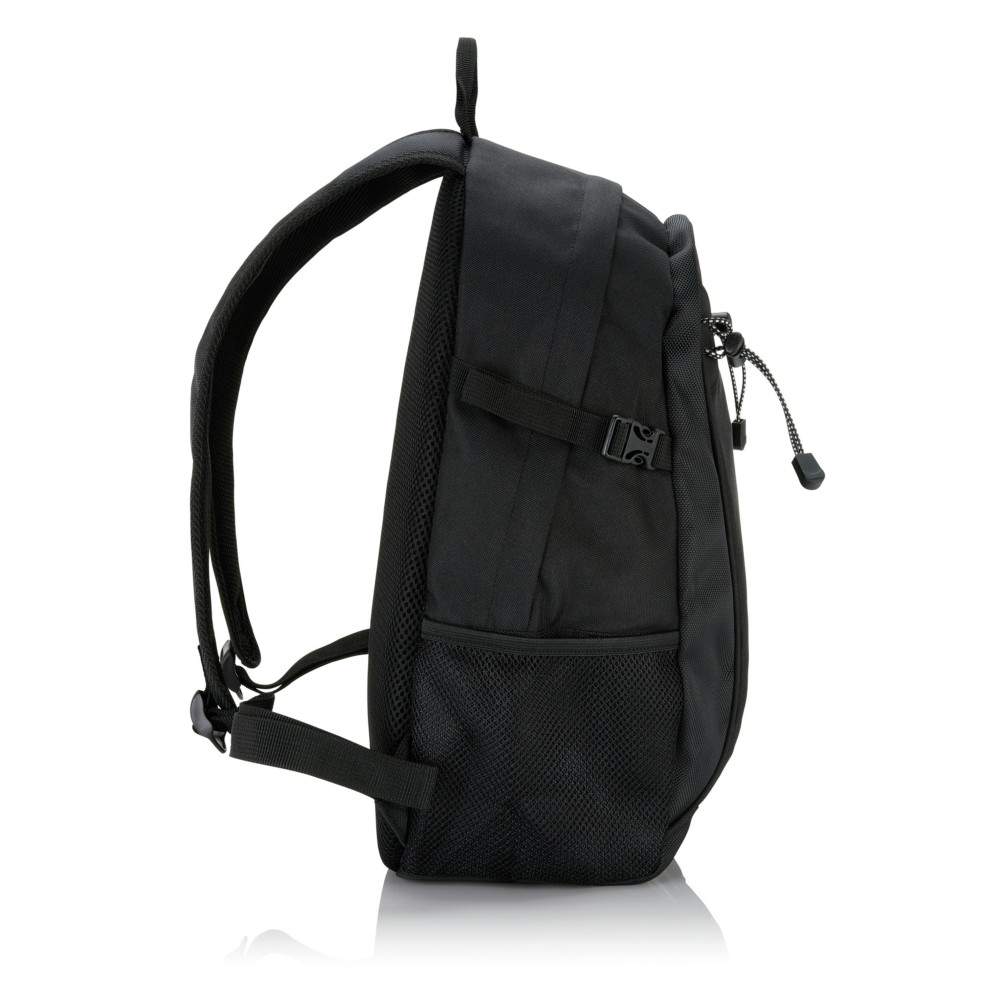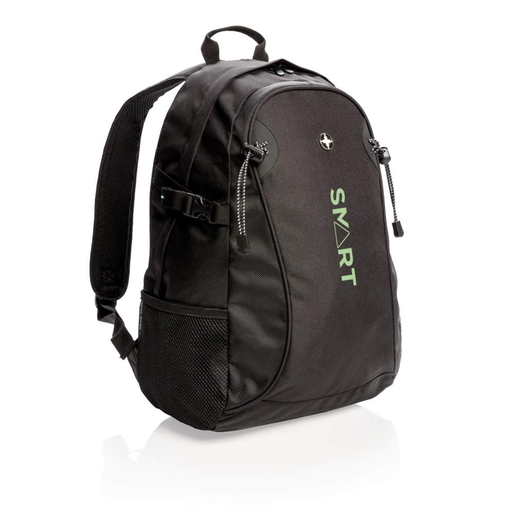 Plecak sportowy, wykonany z poliestru 600D i 1680D, główna przegroda, boczne kieszenie siateczkowe, wygodny dla pleców tylny panel, nie zawiera PVC, ślad węglowy produktu: 4,16 kg CO2