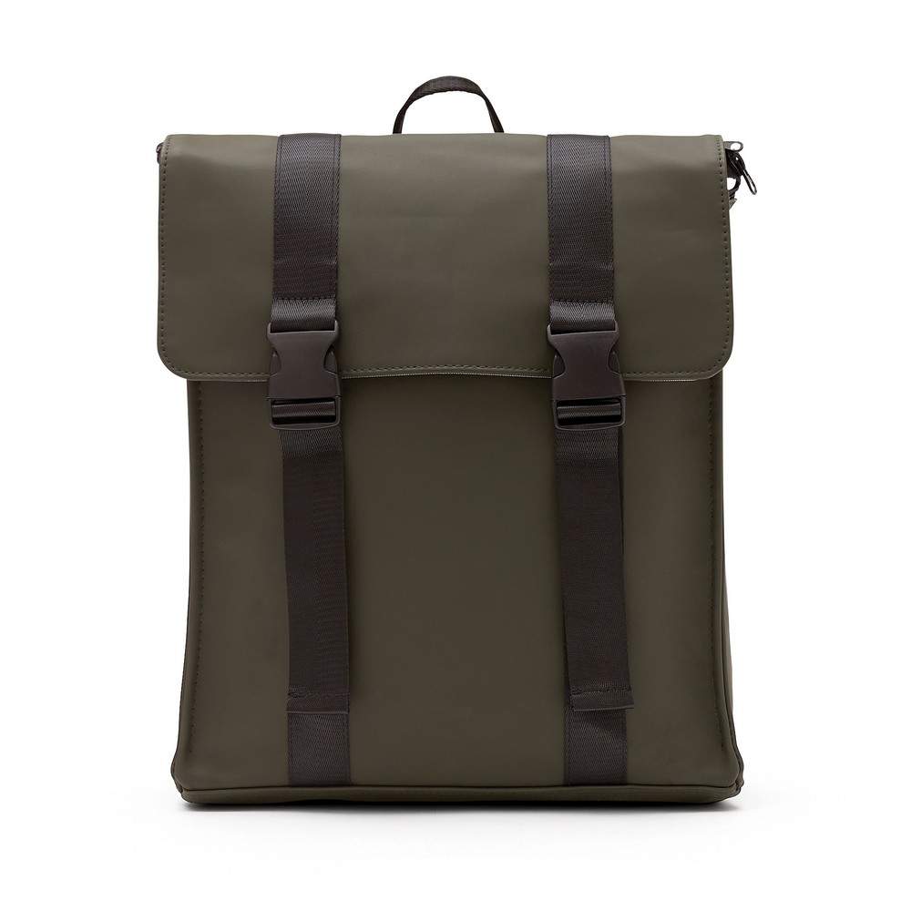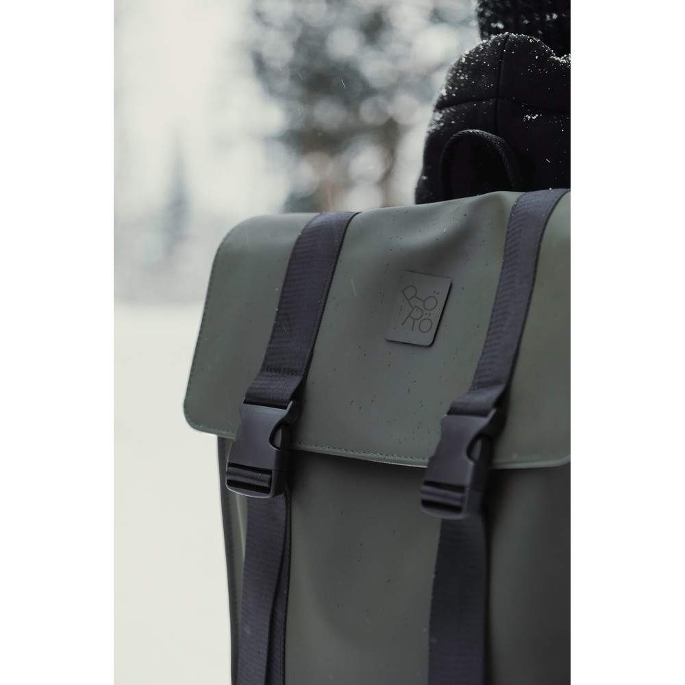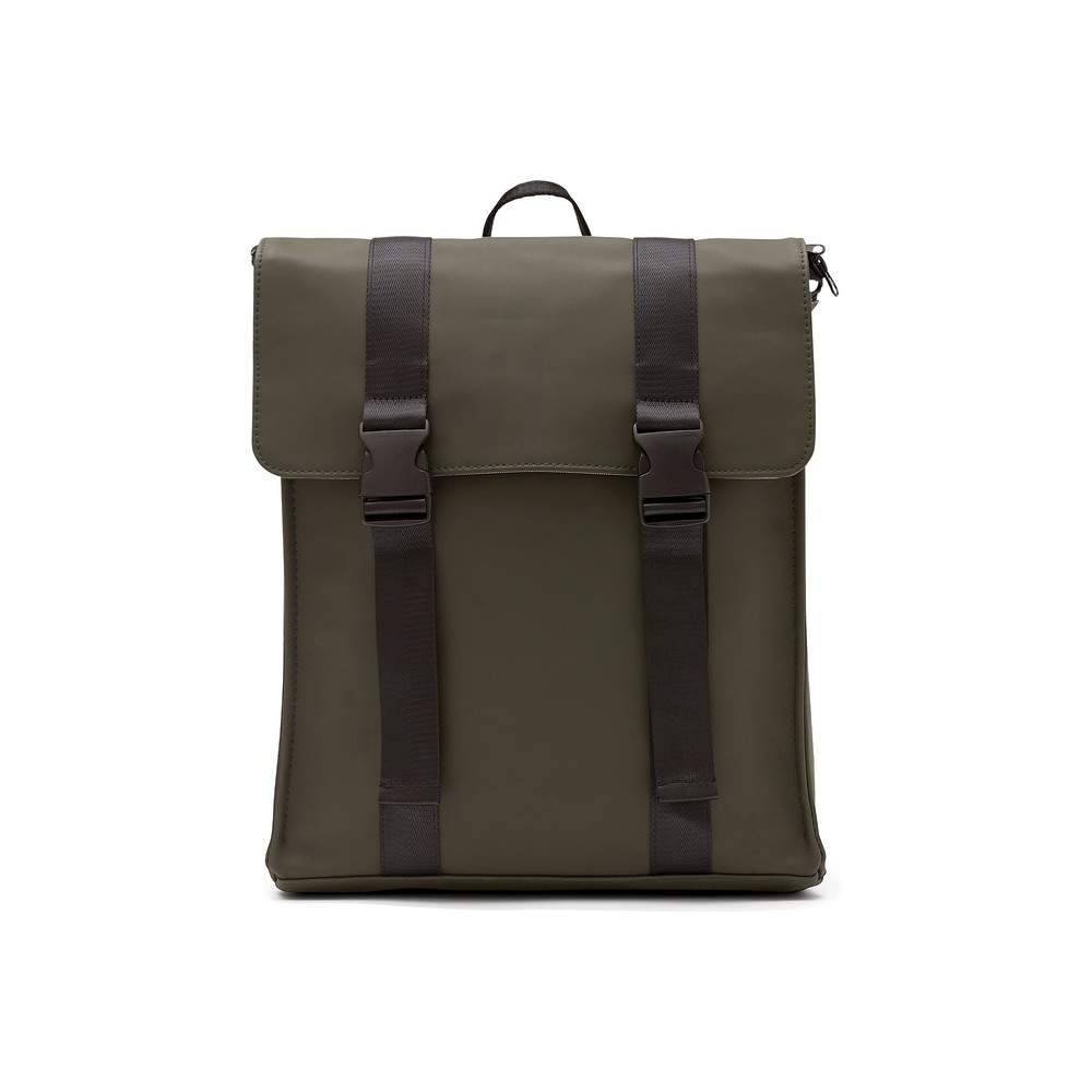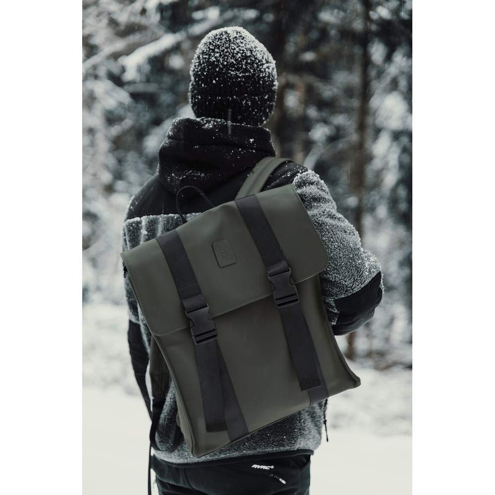 Plecak, wykonany z wodoodpornego materiału, kieszeń na zamek z boku, ukryta kieszeń z tyłu, regulowane paski na ramiona
