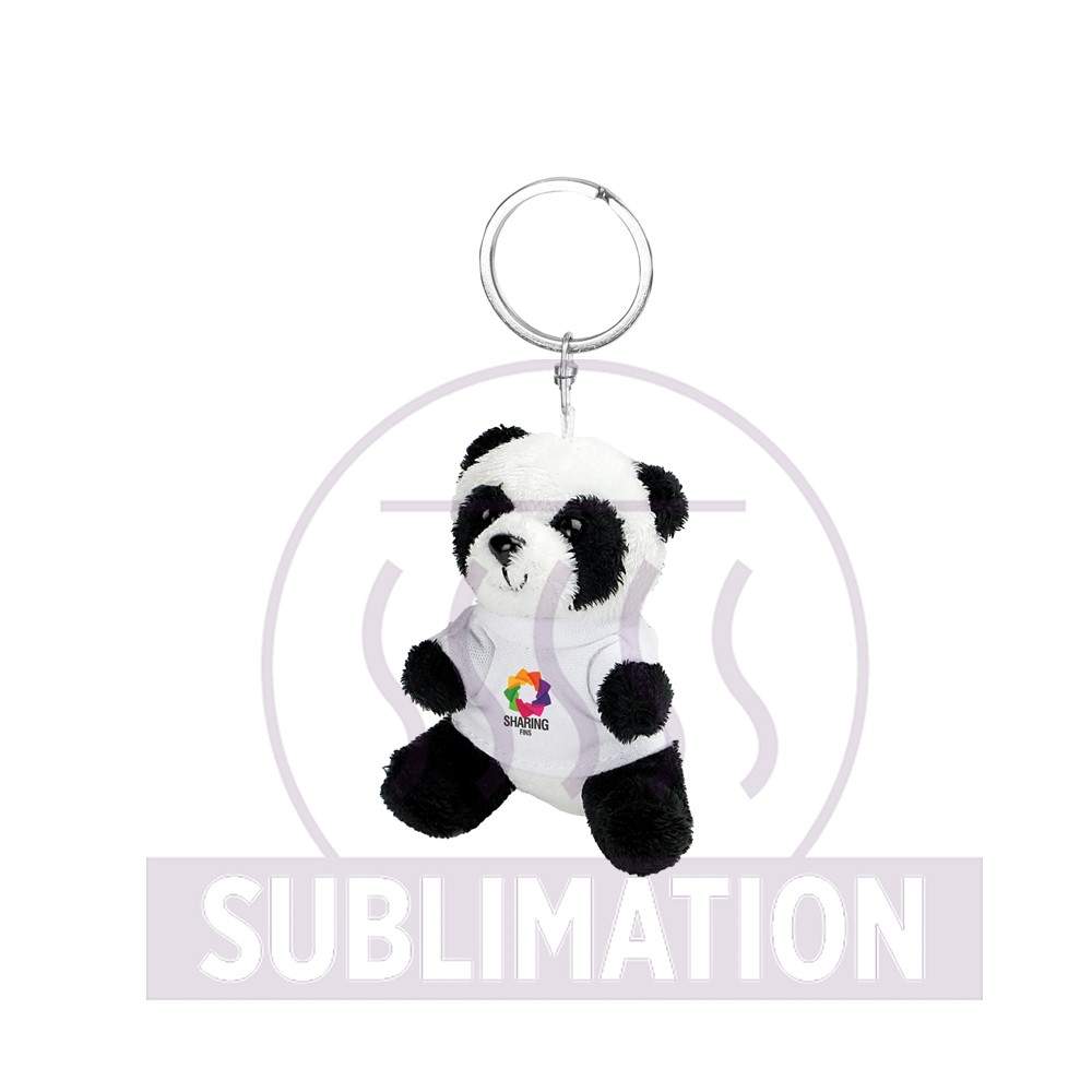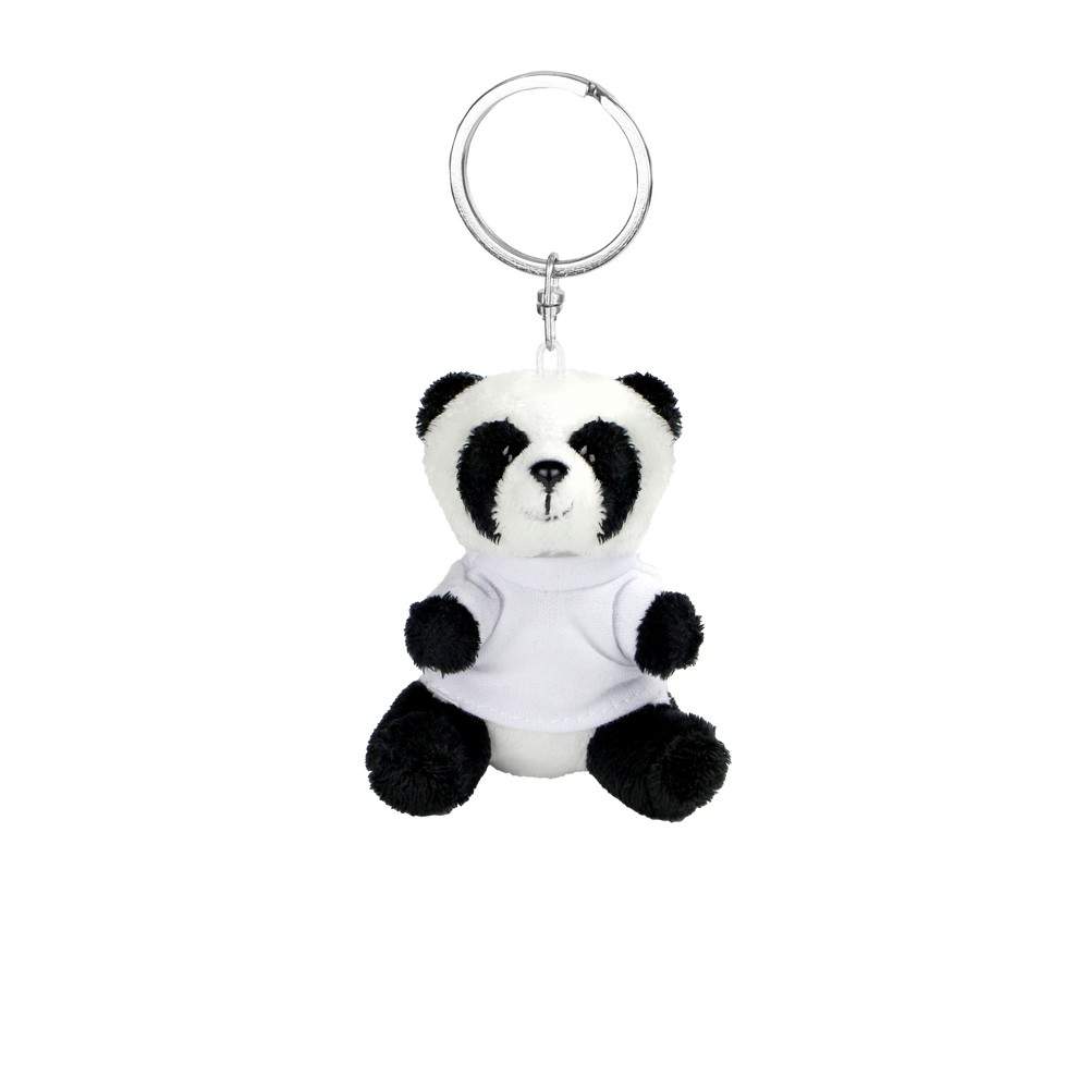 Brelok "panda" z białą koszulką pod nadruk, nieoznakowana koszulka z poliestru jest pakowana oddzielnie, produkt wykonany z pluszu