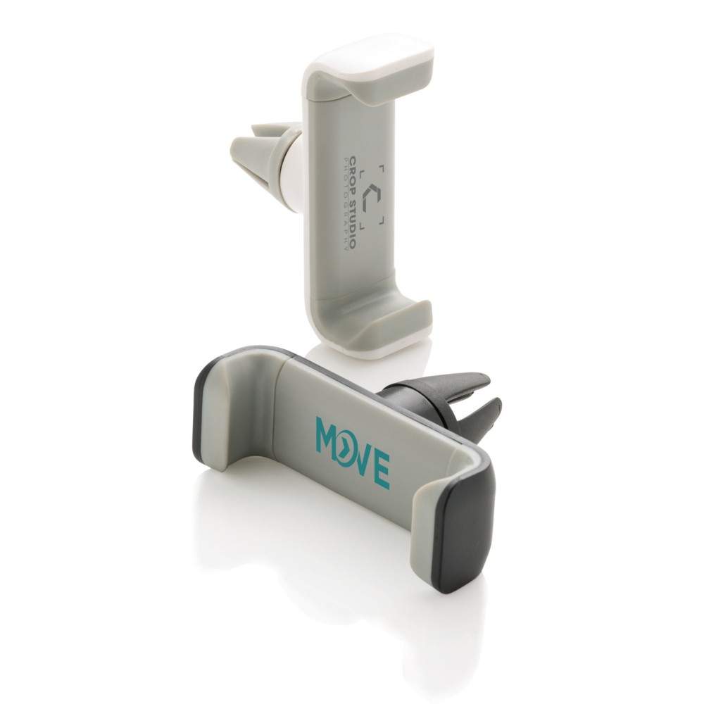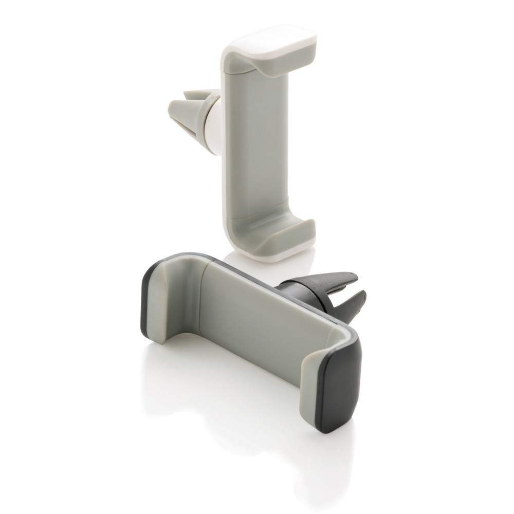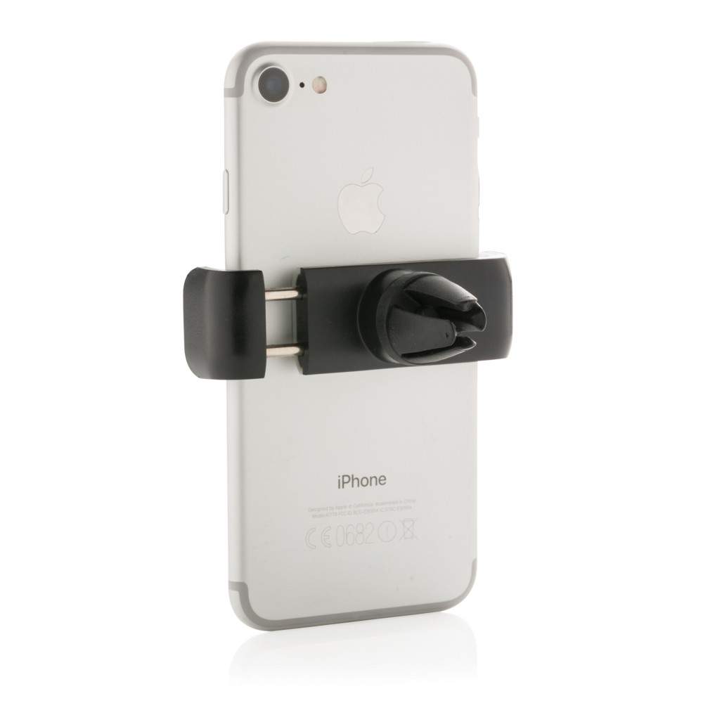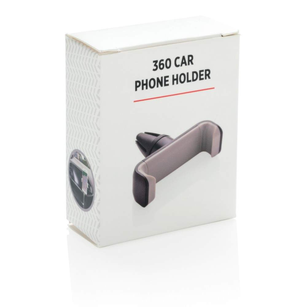 Samochodowy uchwyt do telefonu, obrotowy (360 stopni), kompatybilny z telefonami do 6", mocowanie do kratki wentylacyjnej samochodu, wykonany z odpornego na wysokie temperatury ABS i trwałego silikonu, wewnątrz mechanizm ze stali nierdzewnej, ślad węglowy produktu: 0,18 kg CO2