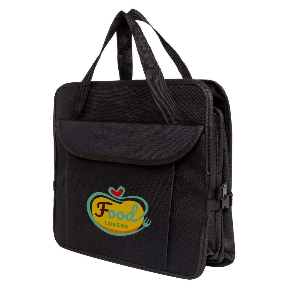 Składany organizer samochodowy z 2 dużymi przegrodami, przegrodą termoizolacyjną zamykaną na zamek błyskawiczny, 2 bocznymi kieszeniami na rzep oraz 2 rzepami na spodzie