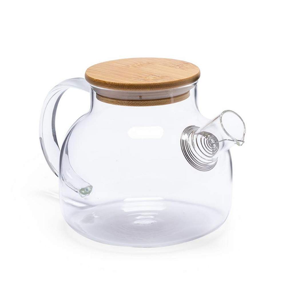Szklany dzbanek do herbaty 1 L z bambusową pokrywką i zaparzaczem