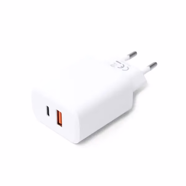 Ładowarka / adapter 2 w 1 wykonany z tworzywa ABS pochodzącego z recyklingu. Szybkie ładowanie o mocy 25 W. Wyjścia: USB typu C i USB 3 A.