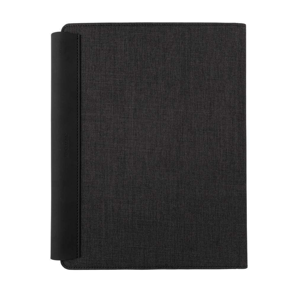 Teczka konferencyjna A4, notatnik (20 kremowych kartek 80 g/m2), ładowarka bezprzewodowa, power bank 5000 mAh, wykonana z mieszanki materiałów RPET i PU, wewnątrz miejsce na przybory do pisania, stojak na telefon, 3 kieszenie na wizytówki i dodatkowe kieszenie, bezprzewodowe ładowanie jest kompatybilne ze wszystkimi urządzeniami posiadającymi możliwość ładowania indukcyjnego, wejście 5V/2A, wyjście 5V/2A, wejście bezprzewodowe 5V/2A, wyjście 5V/1A, w ozdobnym pudełku, ślad węglowy produktu: 4,01 kg CO2