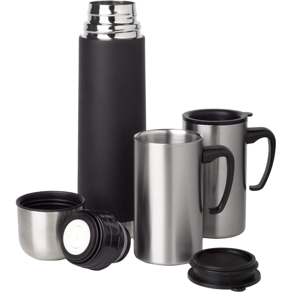 Zestaw podróżny, termos 500 ml z podwójnymi ściankami i 2 kubki 260 ml, w pokrowcu z paskiem na ramię, utrzymuje temperaturę napojów gorących do 20 godzin +leakproof