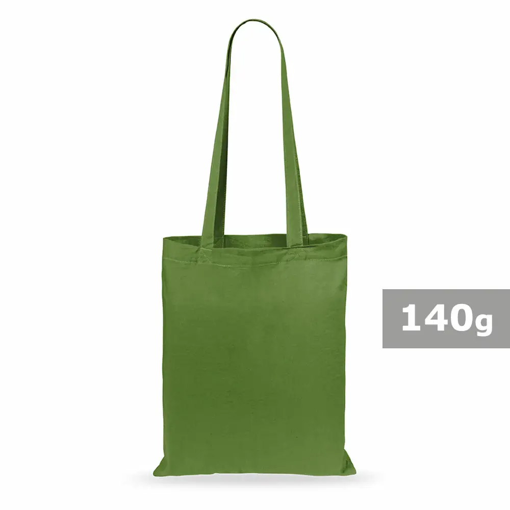Torba na zakupy, posiada długie uchwyty umożliwiające noszenie na ramieniu, produkt wykonany z bawełny o gramaturze 140g/m²