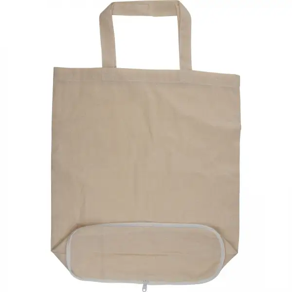Składana torba bawełniana z długimi uszami, w naturalnym kolorze, gramatura 140g/m²2.