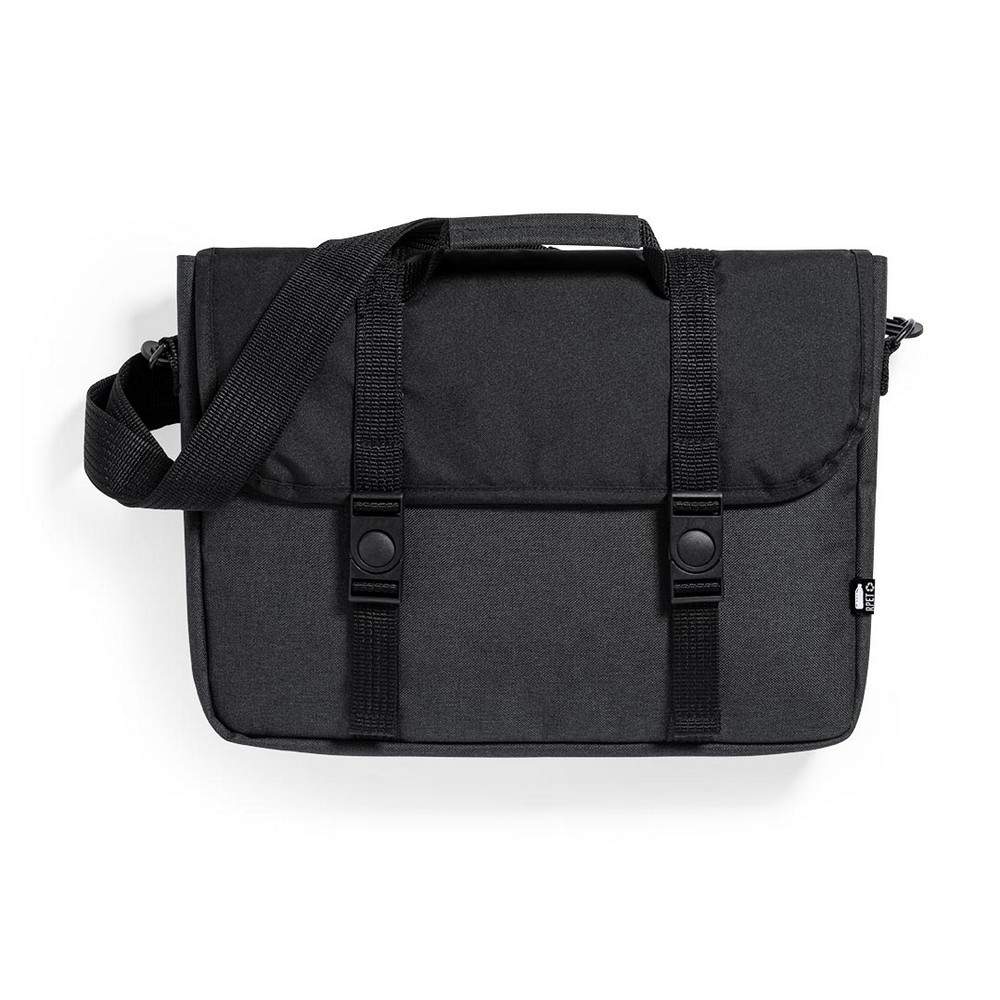 Torba na dokumenty wykonana z RPET z uchwytem, przednia kieszeń, miękka przegroda na laptopa, pasek do zamocowania na torbie podróżnej, regulowany pasek na ramię