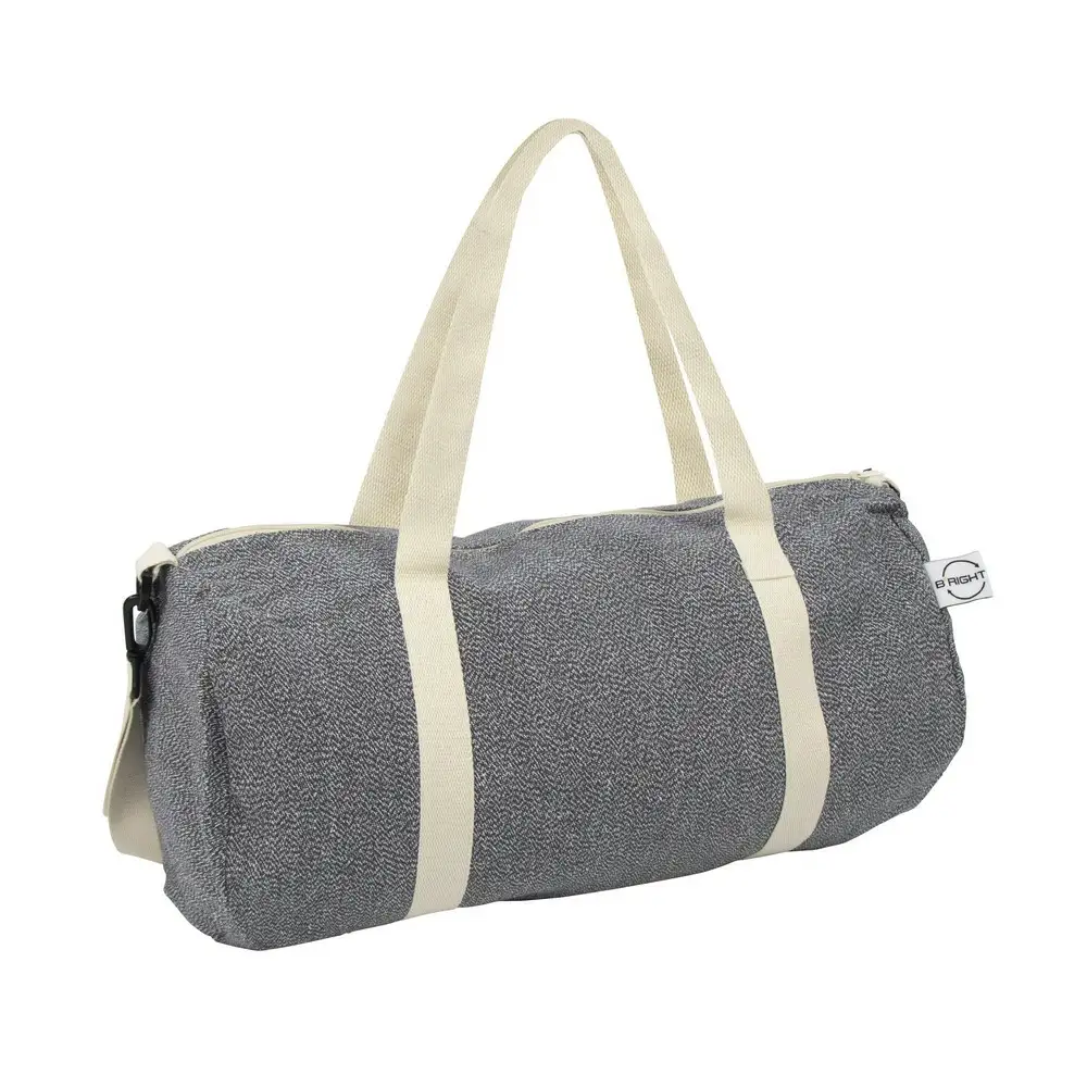Torba sportowa, podróżna B'RIGHT, wykonana z bawełny z recyklingu i poliestru z recyklingu, zgodna z certyfikatem GRS (Global RecycIed Standard), duża przegroda główna na zamek błyskawiczny, uchwyty i regulowany pasek na ramię