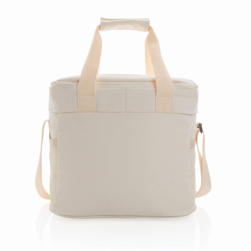 Torba termoizolacyjna, kieszeń z przodu oraz siateczkowe po bokach, pojemność torby do 20 puszek 0,33 l, detale z PU, wnętrze z PEVA, na zewnątrz płótno z recyklingu, dzięki zastosowaniu technologii śledzącej AWARE™ wykorzystane włókna są identyfikowalne z pochodzenia, 2% wpływów z każdego sprzedanego produktu z kolekcji Impact jest przekazywane na rzecz Water.org