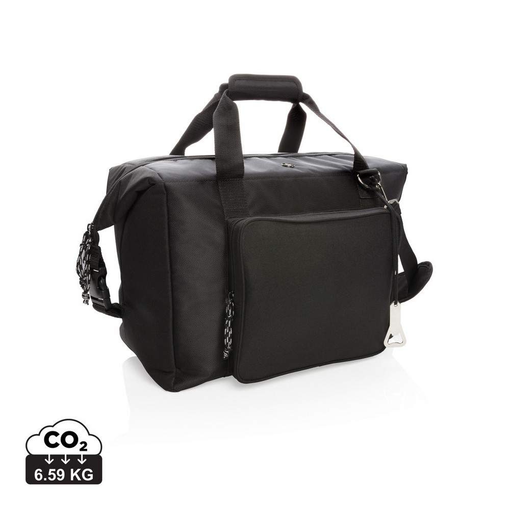 Torba termoizolacyjna, wykonana z poliestru 1680D i 600D, izolacja PEVA, pojemność 40 l, duża przegroda główna zmieści do 52 puszek 0,33 l lub 10 butelek 1,5 l, przegroda główna i przednia kieszeń na zamek błyskawiczny, specjalna konstrukcja z zapięciem z boku umożliwia łatwe przekształcenie torby w worek, otwieracz do butelek w komplecie, podwójnie wzmocnione uchwyty, regulowany pasek na ramię z możliwością odpięcia, ślad węglowy produktu: 6,59 kg CO2