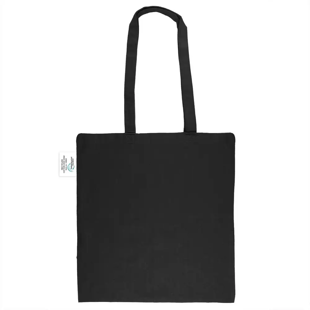 Torba na zakupy B'RIGHT, posiada długie uchwyty umożliwiające noszenie na ramieniu, produkt wykonany z bawełny z recyklingu o gramaturze 200 g/m² i poliestru z recyklingu, zgodna z certyfikatem GRS (Global RecycIed Standard)