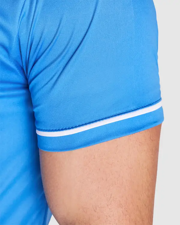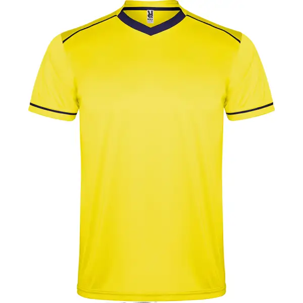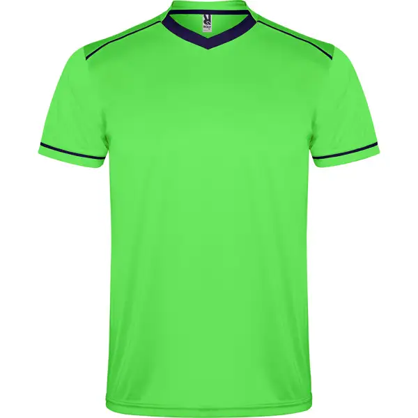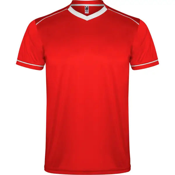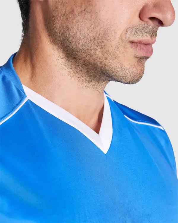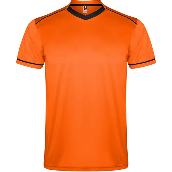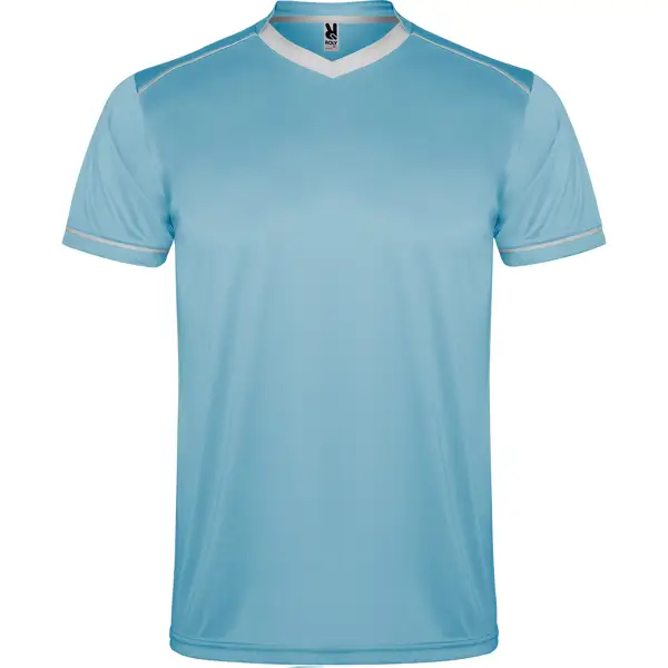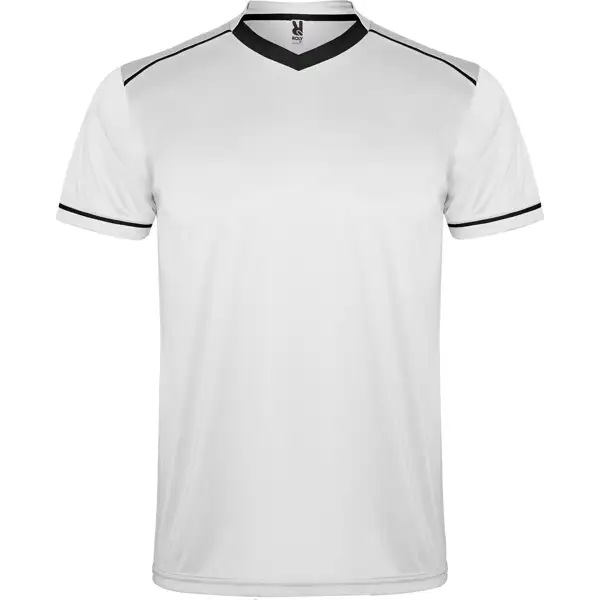 Zestaw sportowy uniseks z koszulką z krótkim rękawem i oddychającymi spodniami. Dwukolorowa koszulka z krótkim rękawem z dekoltem w serek. Kontrastowe lamówki na ramionach i rękawach. Miękka taśma kryjąca przeszycie na karku. Spodnie z elastyczną taśmą w pasie i regulowanym ściągaczem. Kontrastowe kolory. Boczne rozcięcia.