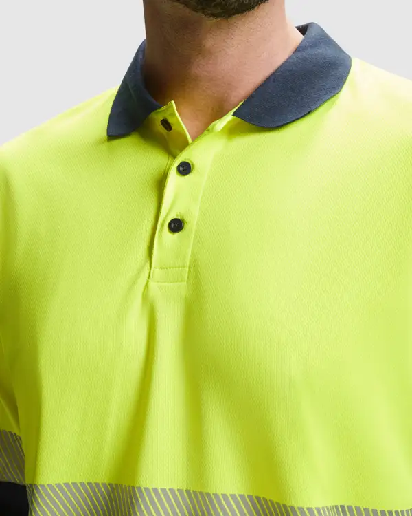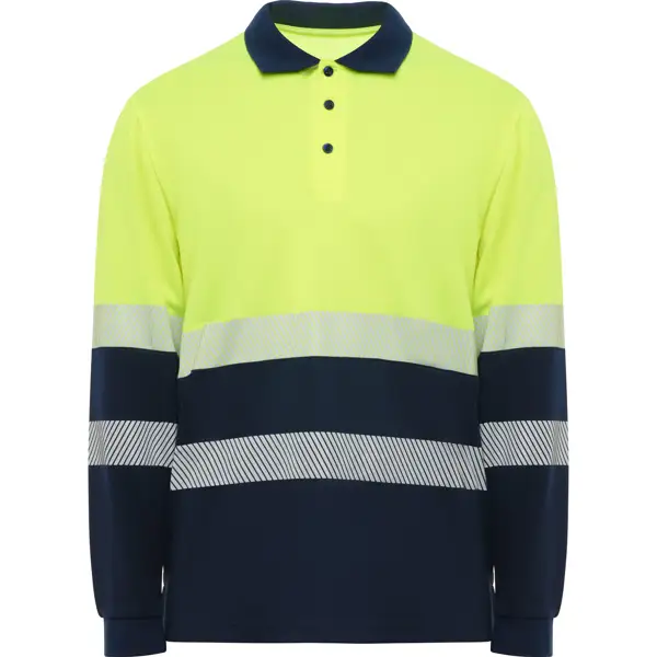 Dwukolorowa koszulka polo z długim rękawem o wysokiej widoczności.· Oddychająca tkanina techniczna.· Dwa segmentowe paski na tułowie i dwa na rękawach.· Prążkowany kołnierz 1x1.· Rozcięcie z 3 kontrastowymi guzikami.· Opcjonalna kieszeń.· Miękka taśma kryjąca przeszycie na karku.· Zewnętrzna etykieta Roly WRK.· Program prania: x25