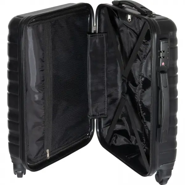Solidna walizka na kókach z dwoma komorami - jedną oddziela materiałowe zamknięcie z dodatkową siateczkową kieszenią zamykaną na zamek, ubrania w drugiej komorze można zabezpieczyć zapięciem na elastyczne pasy. Walizka ma 4 kółeczka i teleskopową rączkę oraz dodatkowe dwa uchwyty do przenoszenia po obu stronach. Dzięki zamkowi TSA możesz być spokojny o zawartość walizki. Możliwość zamówienia zawieszki z grawerem 9086803.