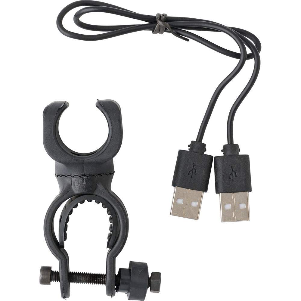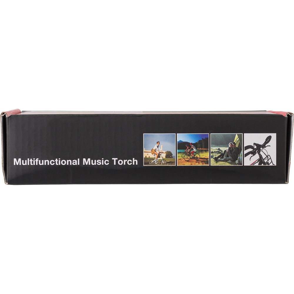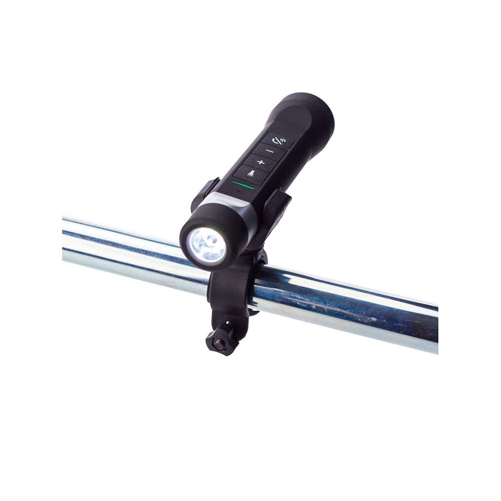 Wielofunkcyjna latarka LED, bezprzewodowy głośnik BT 5.0, power bank, uchwyt rowerowy oraz kabel do ładowania w komplecie