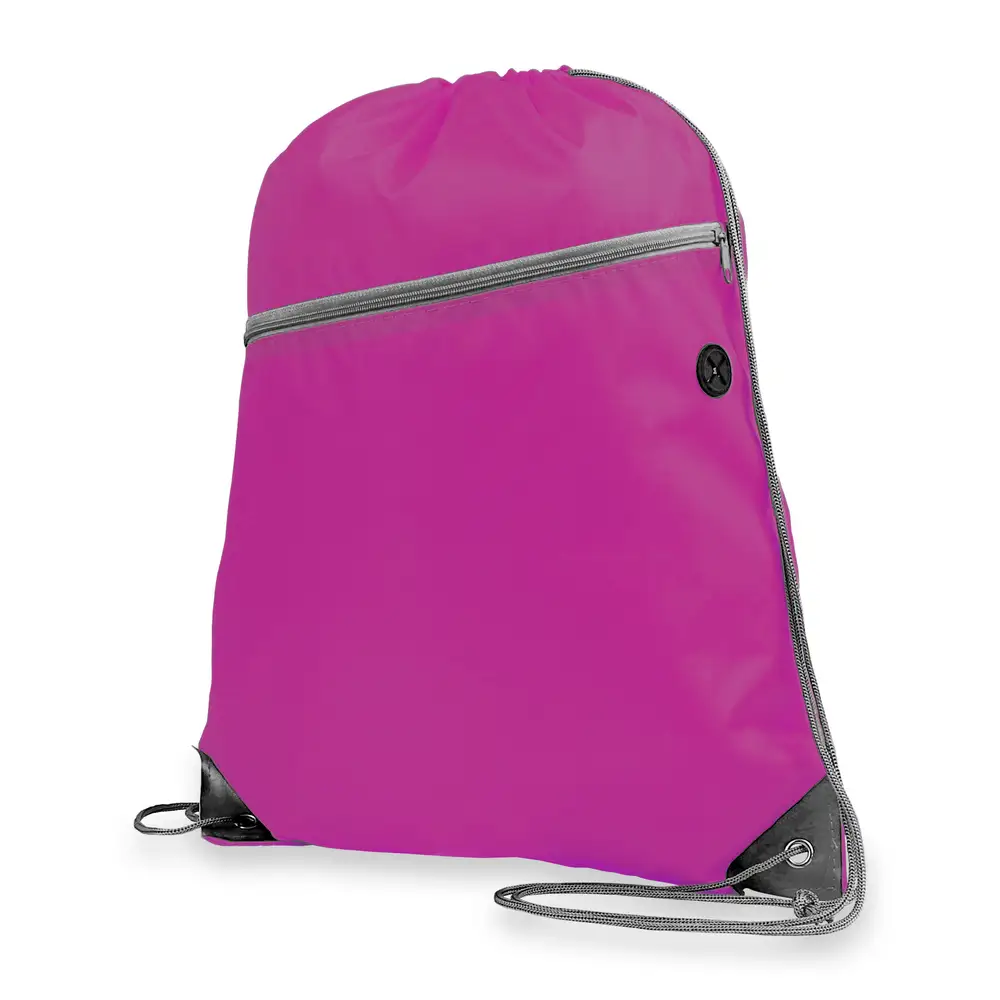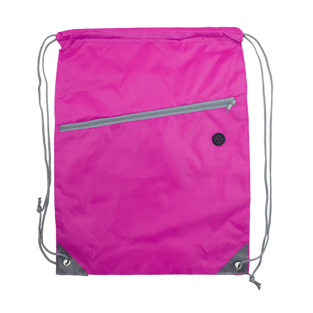 Worek ze sznurkiem umożliwiającym noszenie na plecach, wzmocnione narożniki zmniejszają ryzyko rozdarcia materiału, pomieści drobne zakupy lub strój sportowy na siłownię, posiada przednią kieszeń zamykaną na zamek błyskawiczny oraz otwór na kabel od słuchawek lub power banku (nie są dołączone), produkt wykonany z poliestru 210D