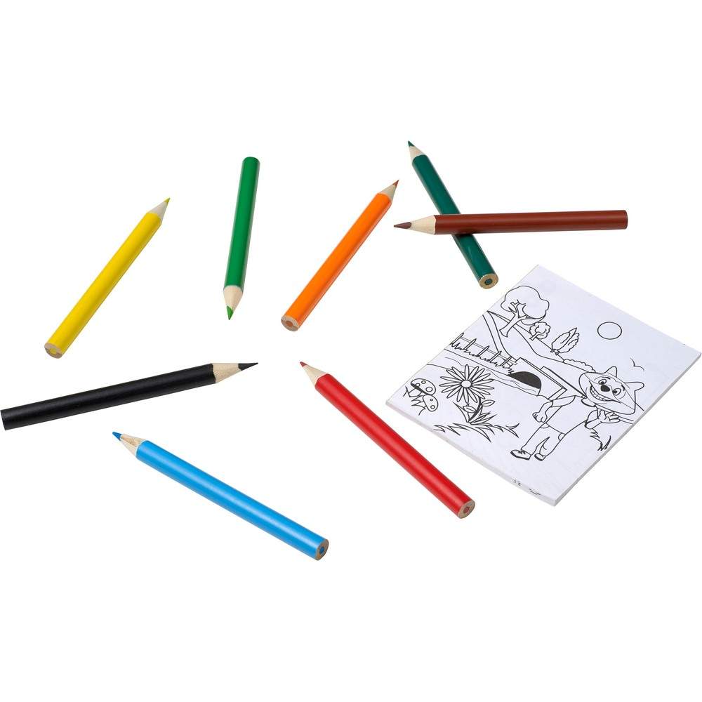 Zestaw do rysowania, 8 kredek i 20 kolorowanek, w przezroczystym pudełku