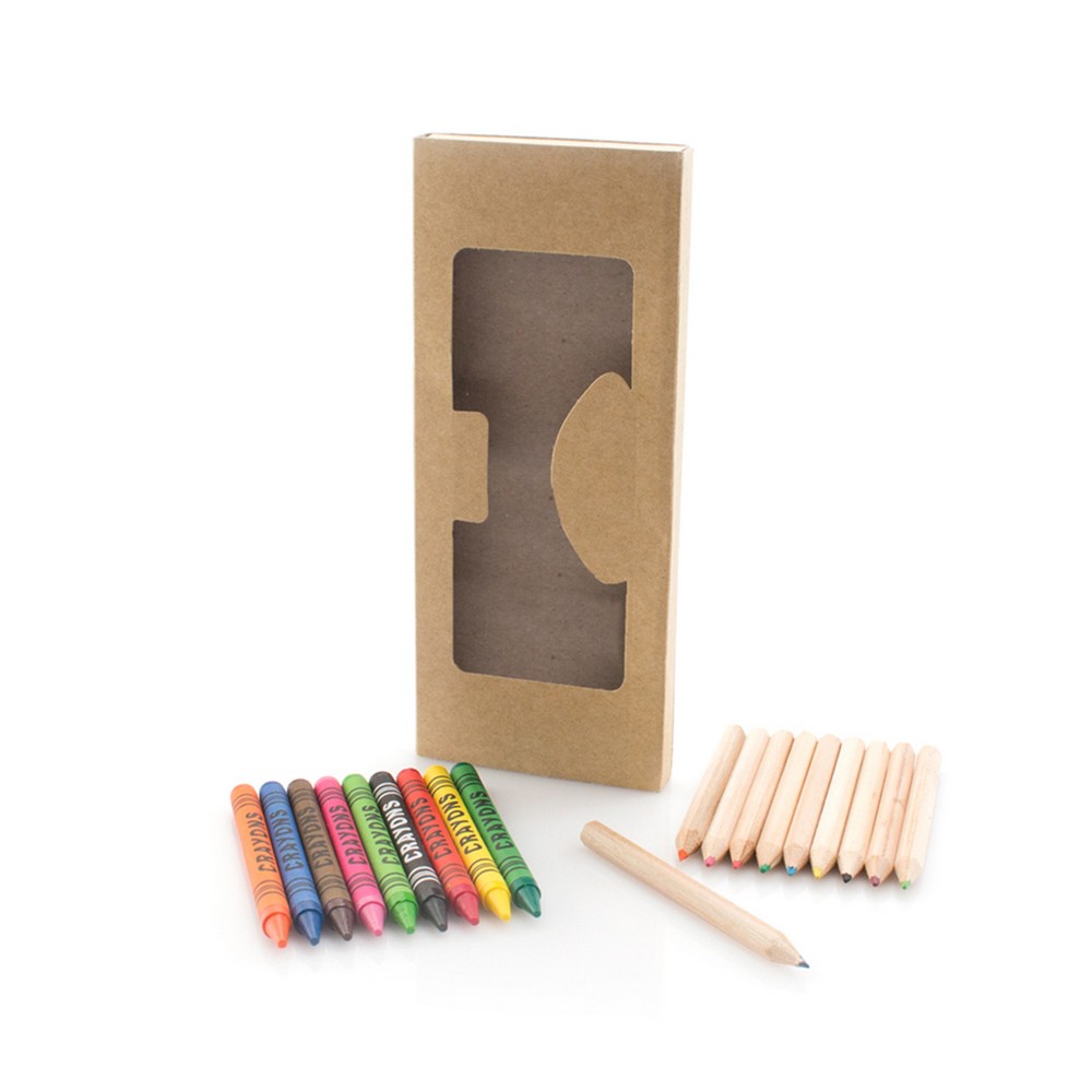 Zestaw do rysowania, 10 kredek zwykłych i 9 świecowych w kartonowym pudełku z okienkiem