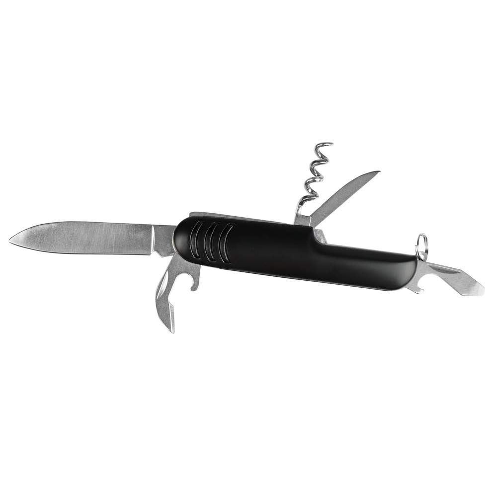 Zestaw w czarnym pudełku: narzędzie wielofunkcyjne, scyzoryk (7 el.) i latarka 1 LED z karabińczykiem